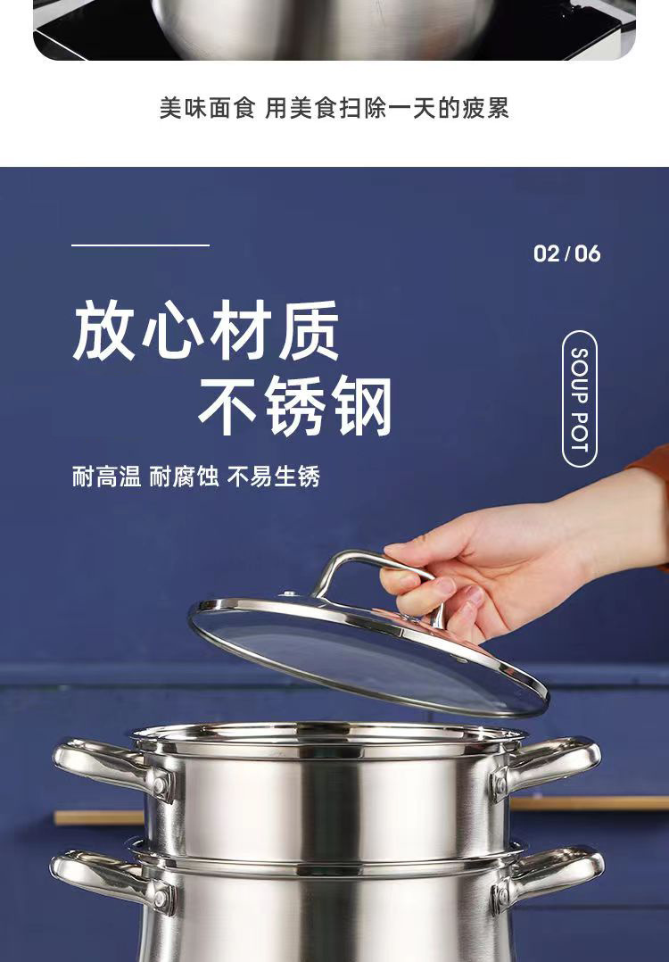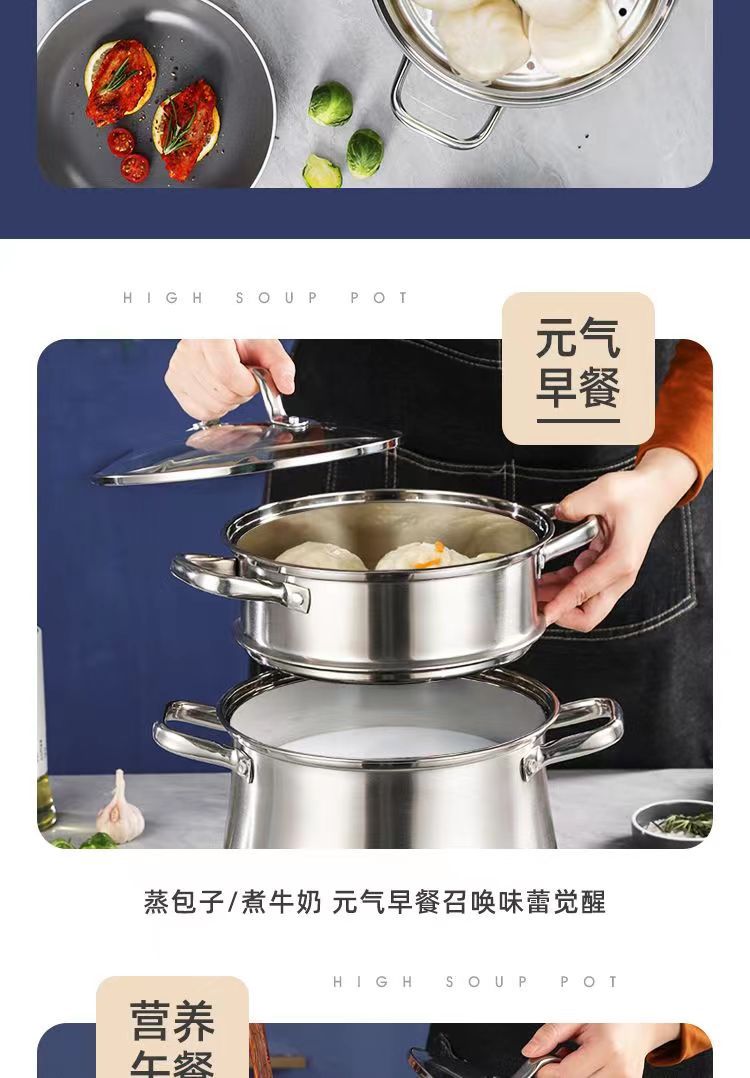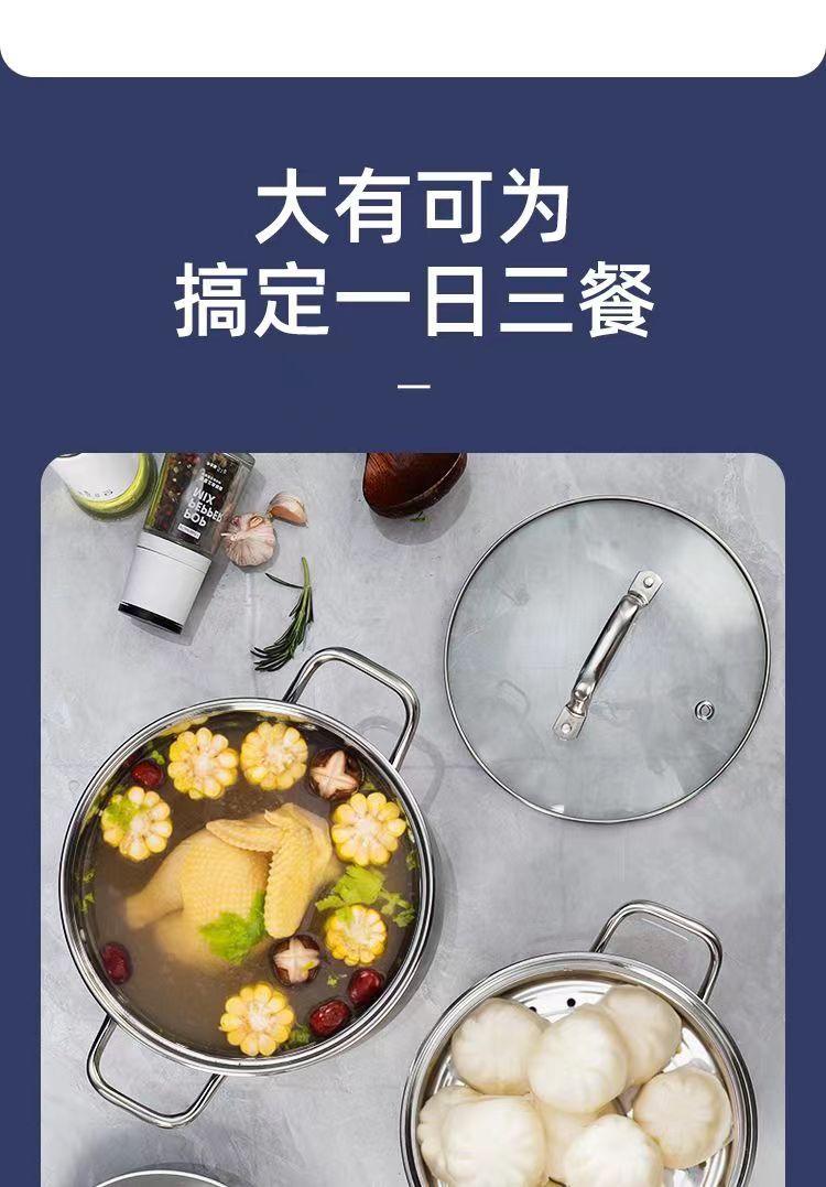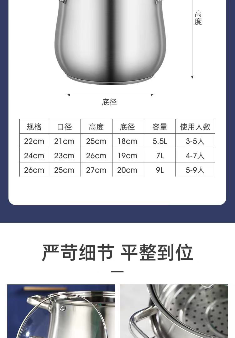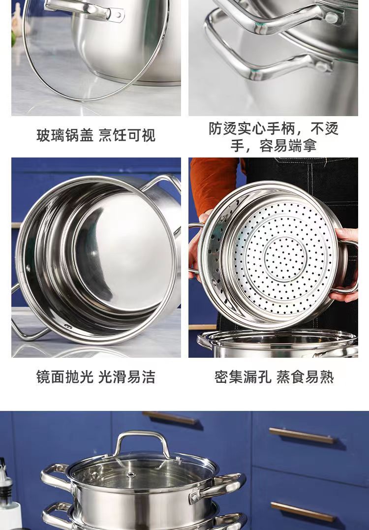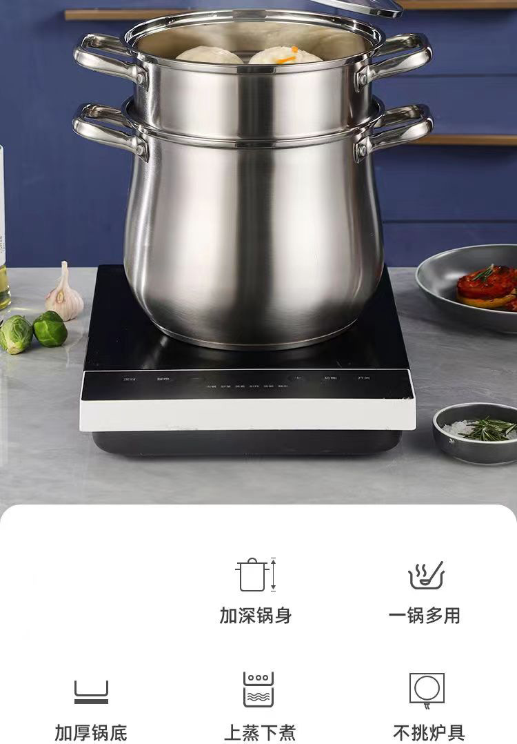 22cm (three-layer composite bottom soup steam pot + steaming rack)
