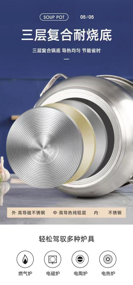22cm (three-layer composite bottom deepening soup pot)