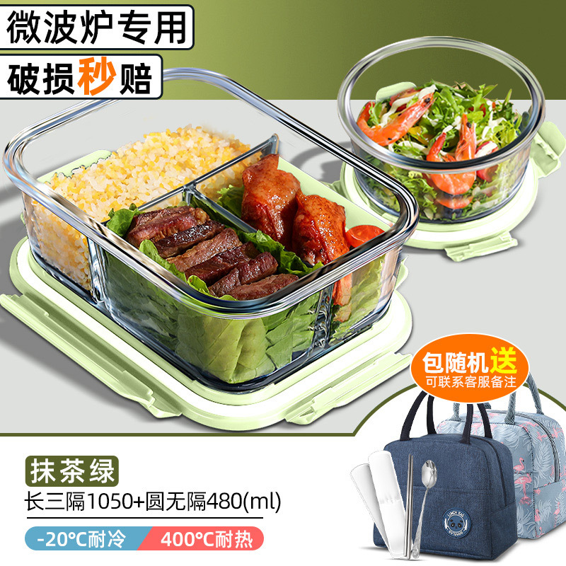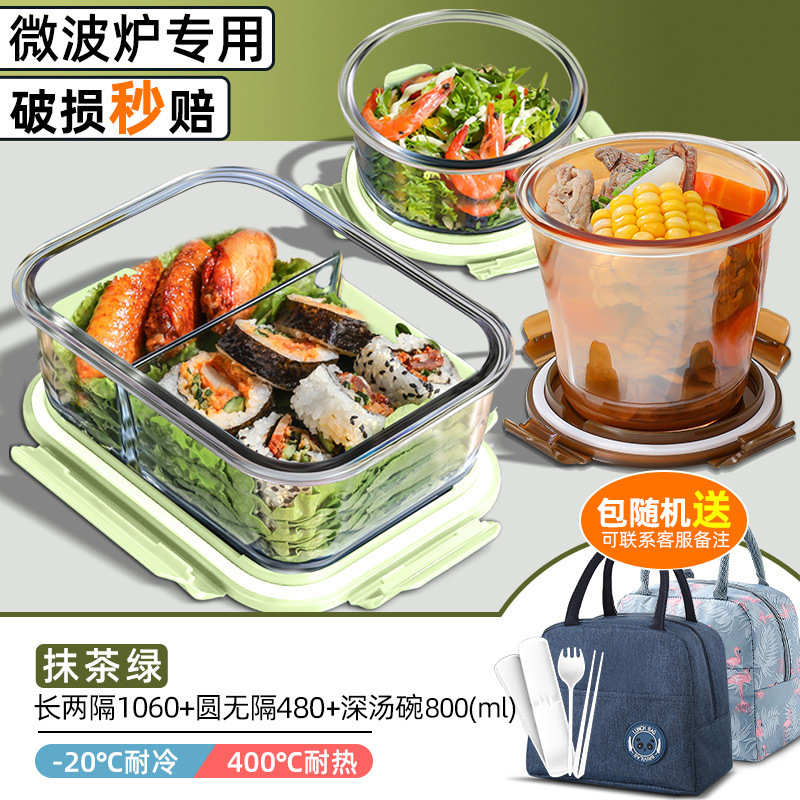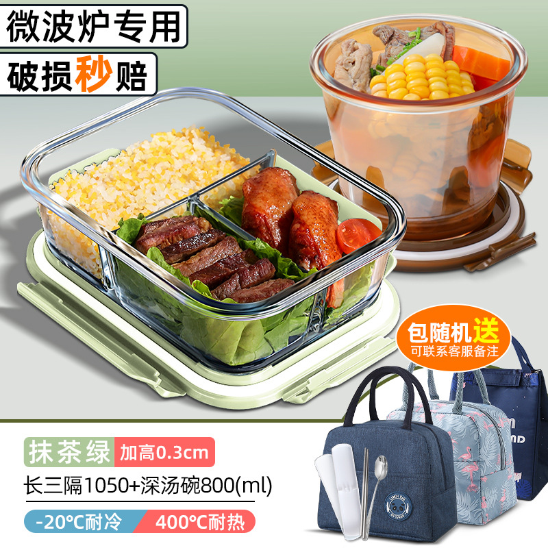 matcha big long three points separated 1050ml + round non-separated + cloth bag + tableware