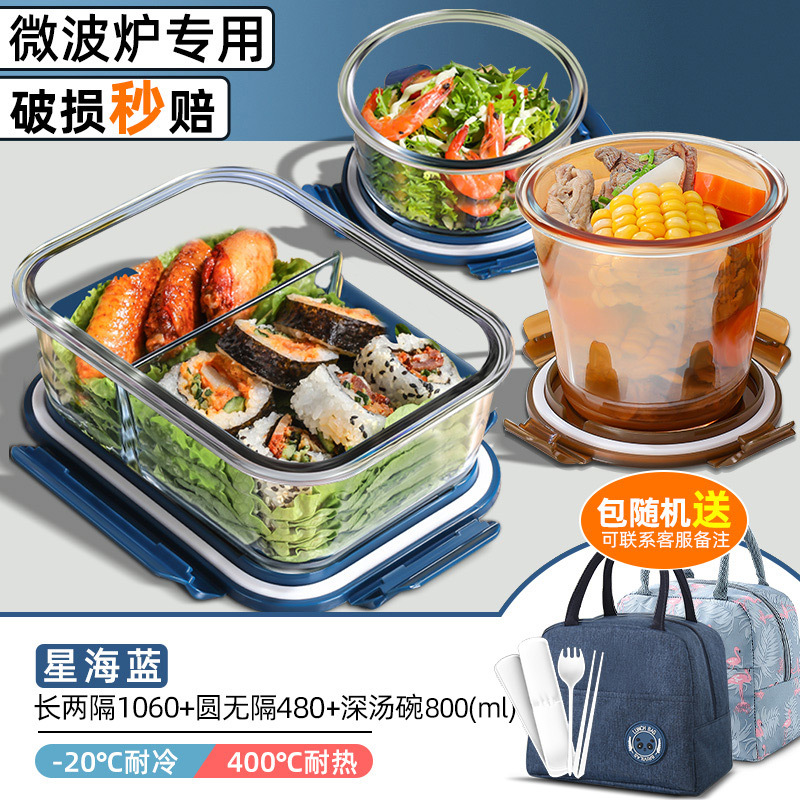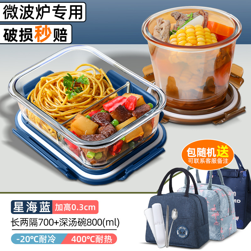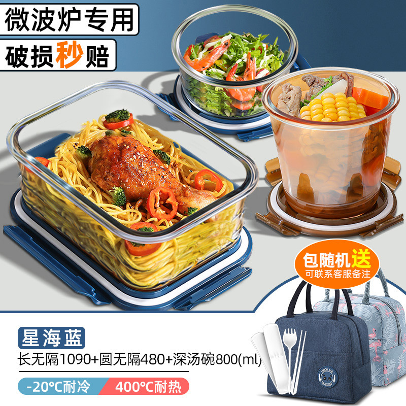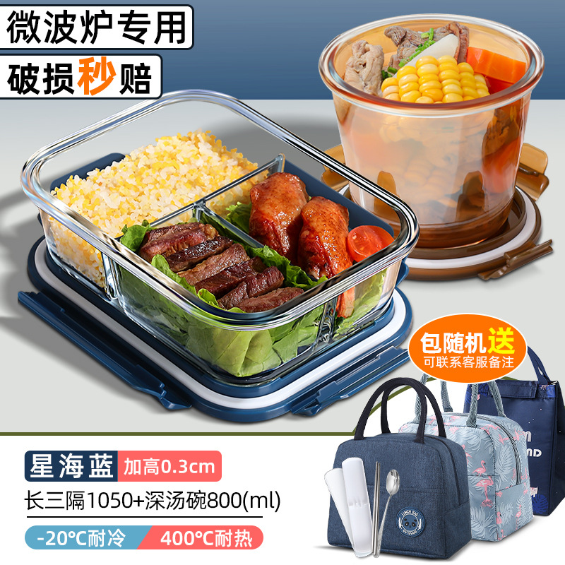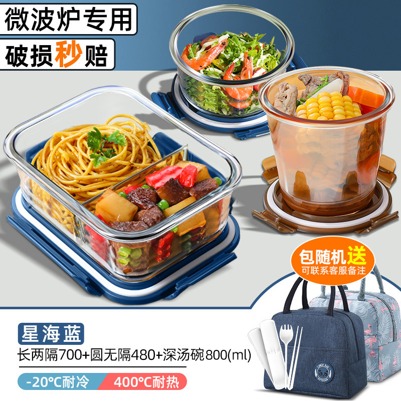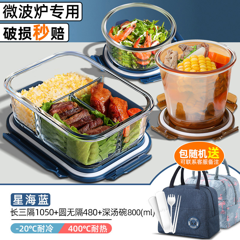 xinghai blue big long three separated 1050ml + round non-separated + soup bowl + cloth bag + tableware