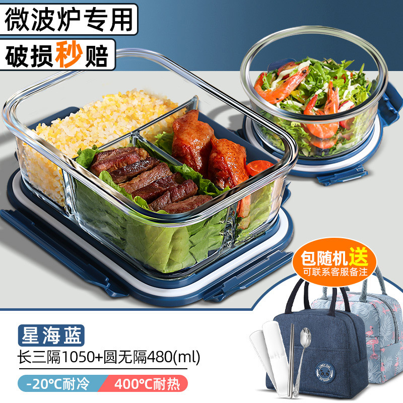 xinghai blue big long three separated 1050ml + round non-separated + cloth bag + tableware