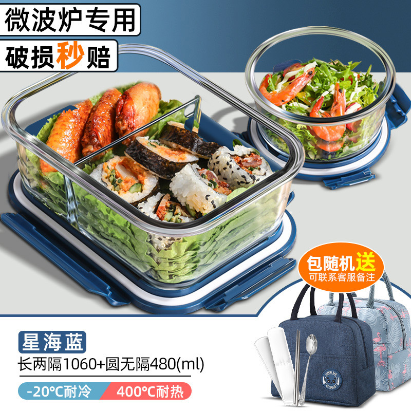 xinghai blue large long two separated 1060ml + round non-separated + cloth bag + tableware