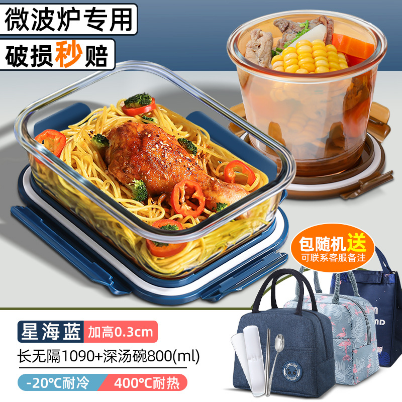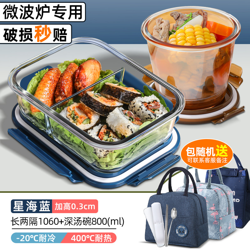 xinghai blue large long two separated 1060ml + round non-separated + soup bowl + cloth bag + tableware