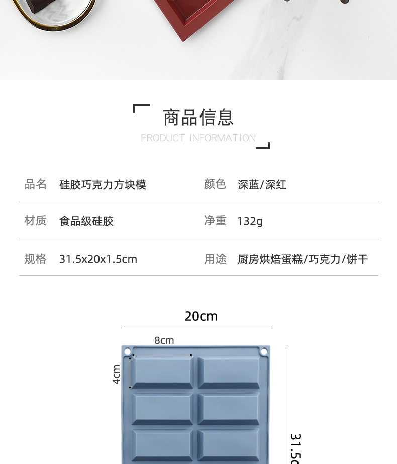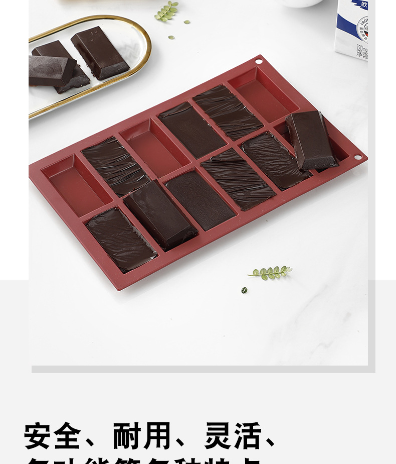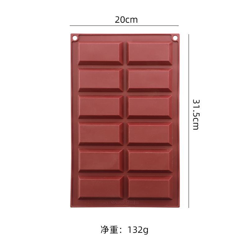 dark red 12-grid rectangular silicone mold