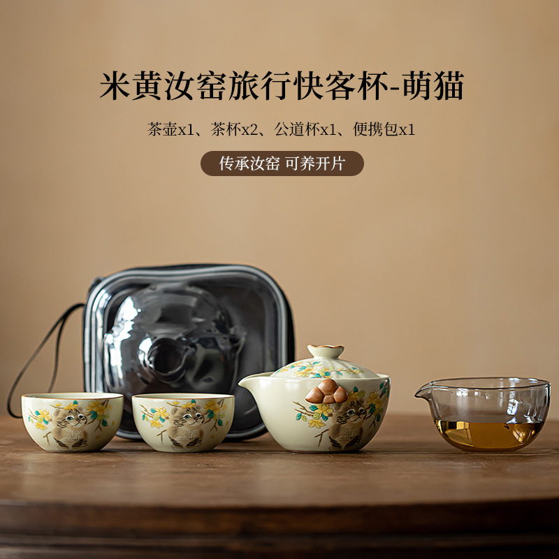 beige ru ware travel convenient tea cup set-cute cat