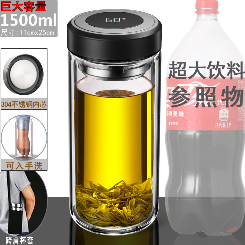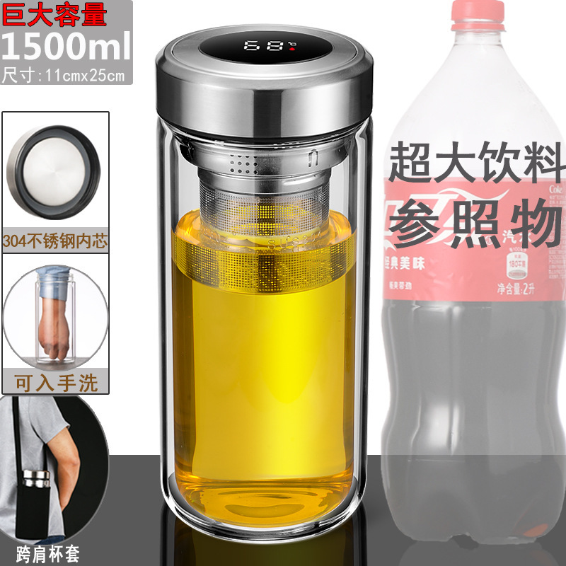 [2024 super large temperature measurement] 1500ml steel lid + cup cover tea water separation