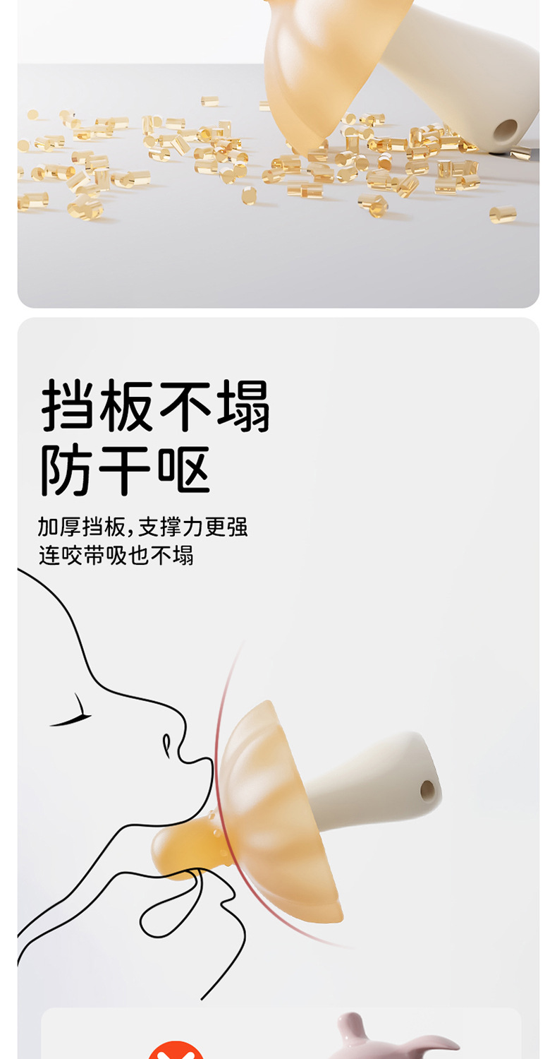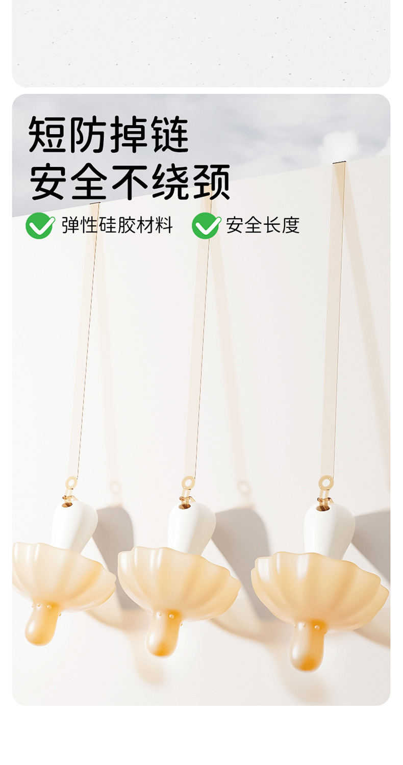 brown small mushroom soothing teether + drop-preventing chain + storage box