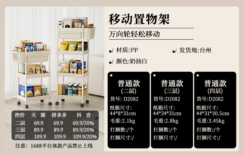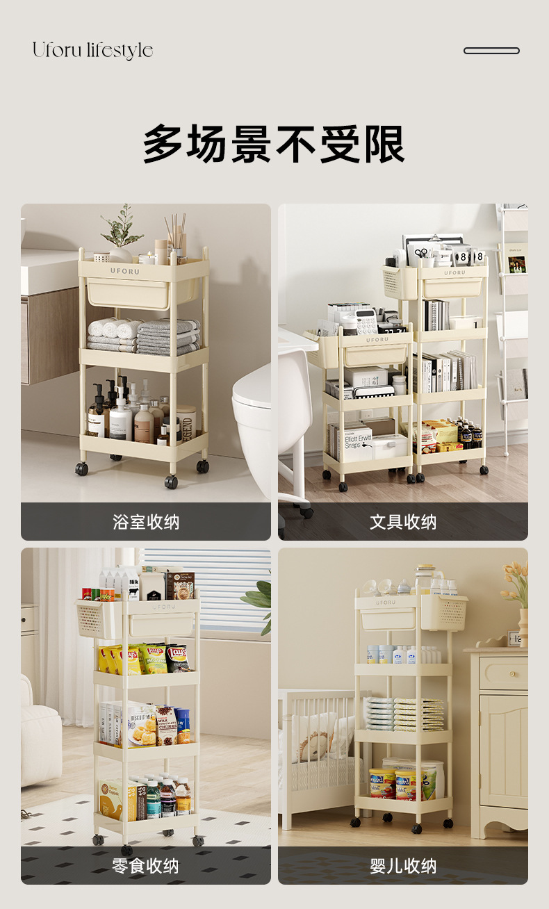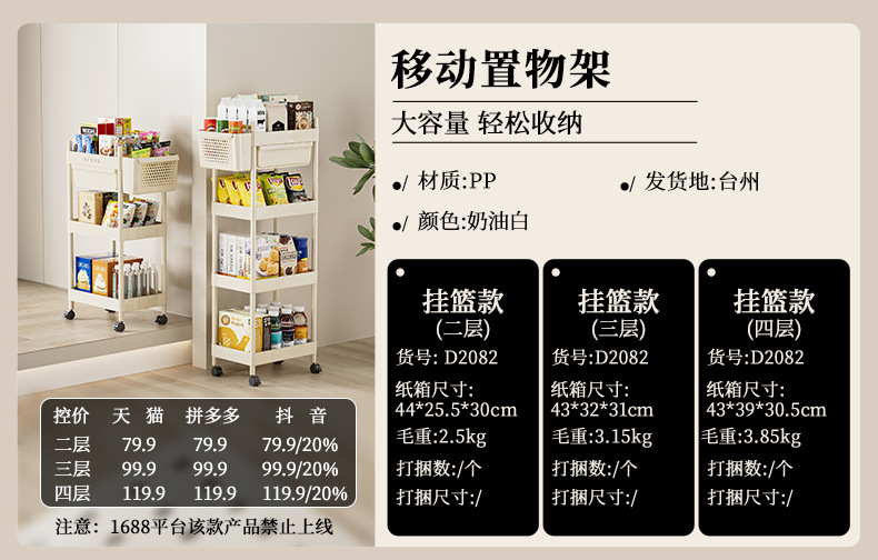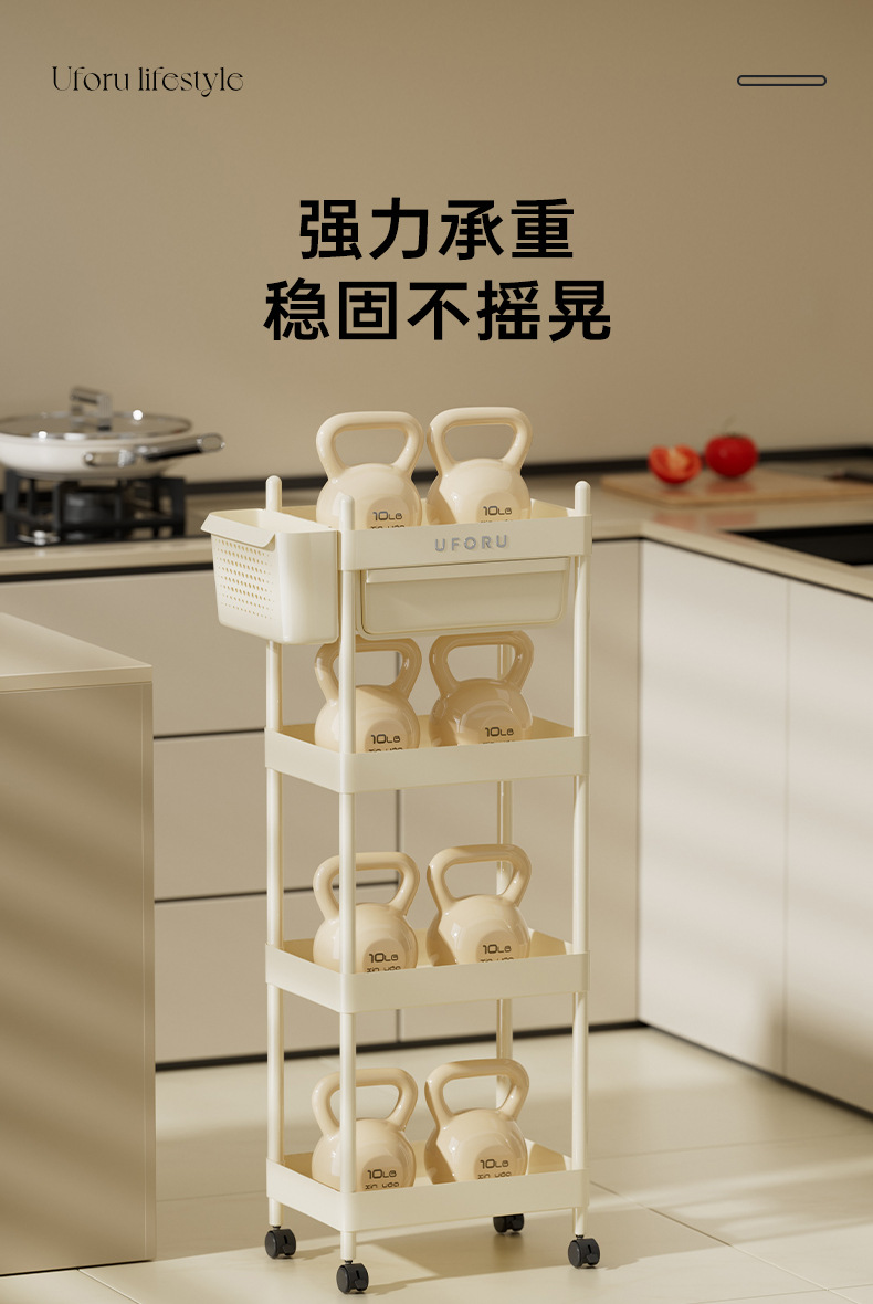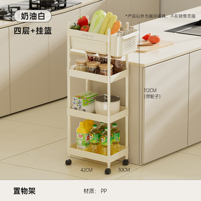 4-layer multifunctional storage rack (with hanging basket)-cream white