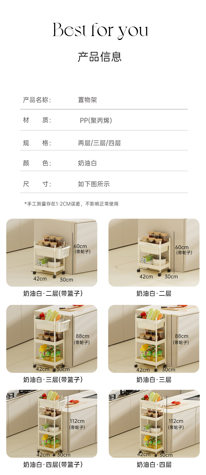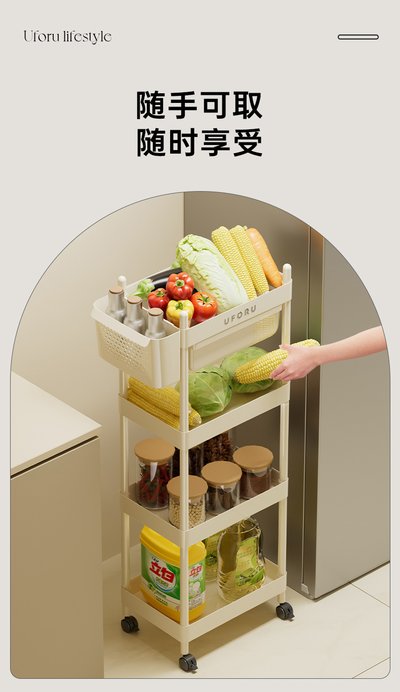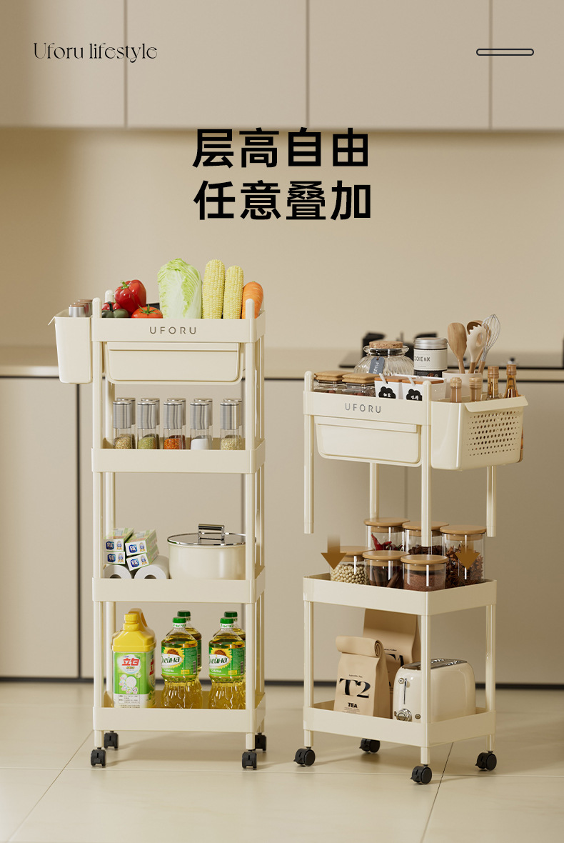 4-layer multifunctional storage rack-cream white