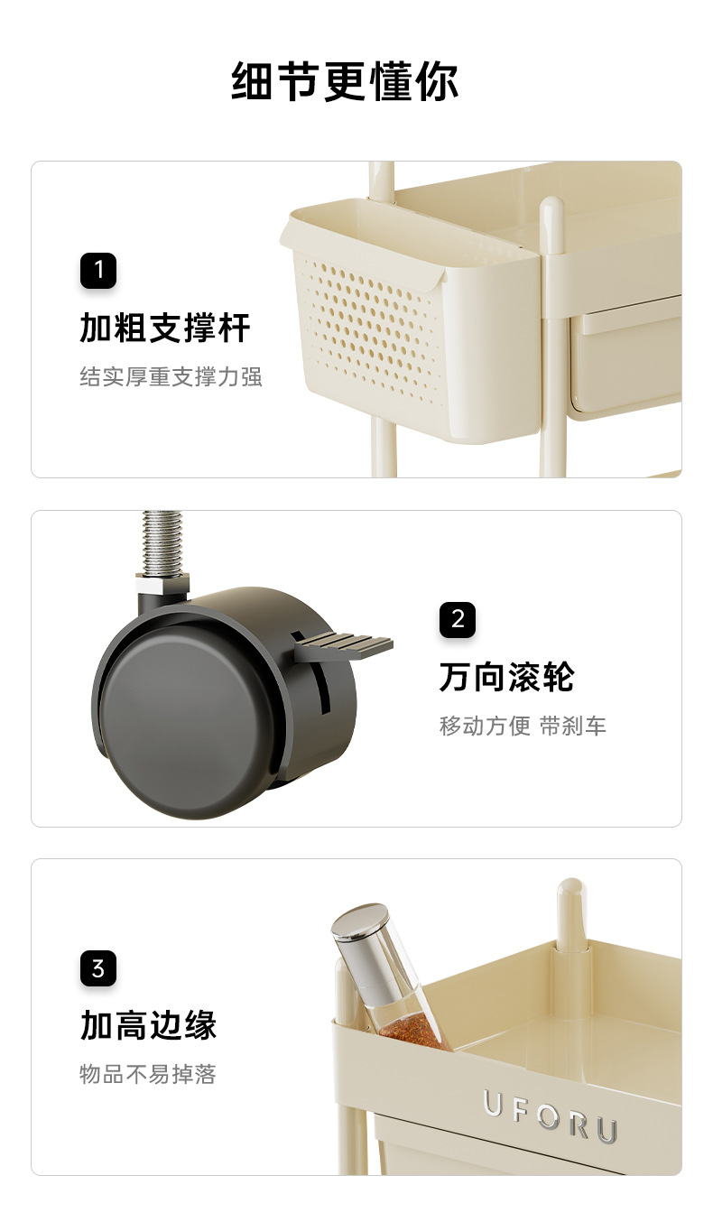 3-layer multifunctional storage rack-cream white