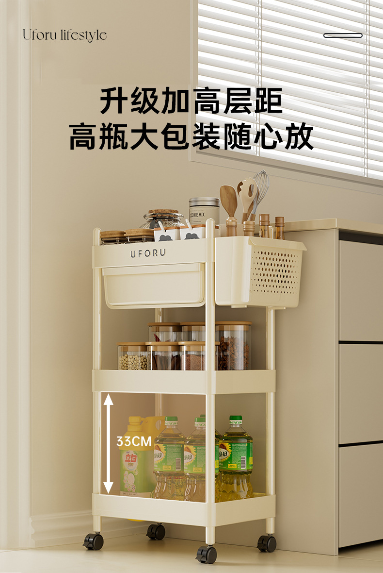 3-layer multifunctional storage rack (with hanging basket)-cream white