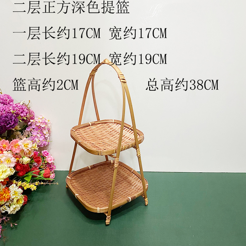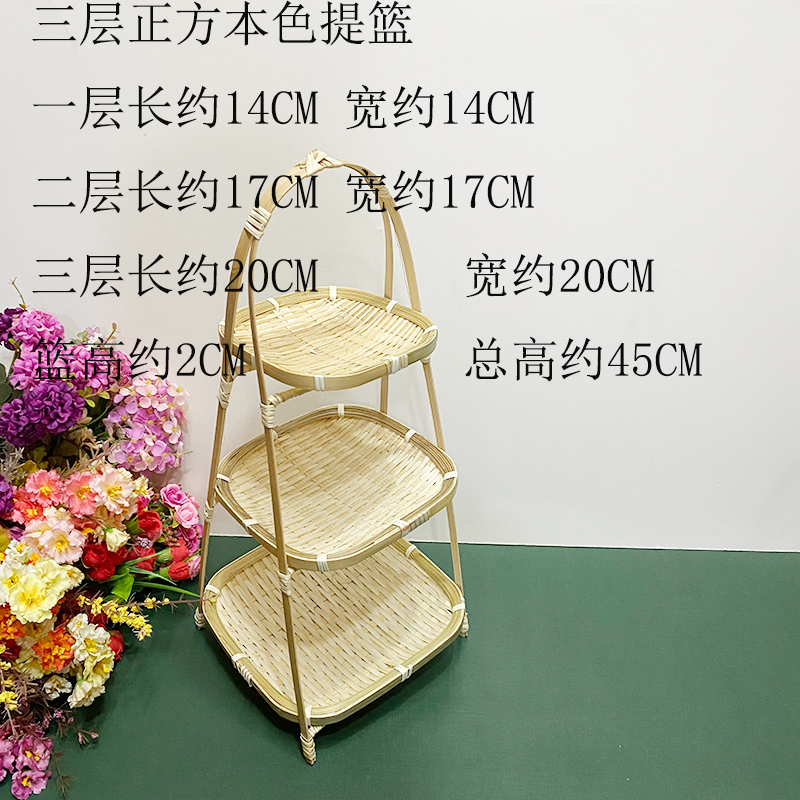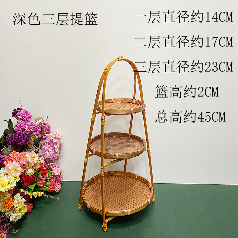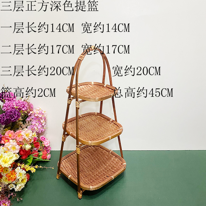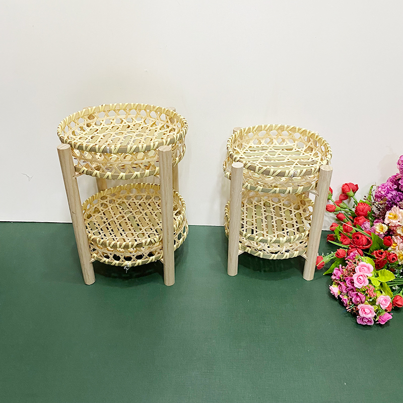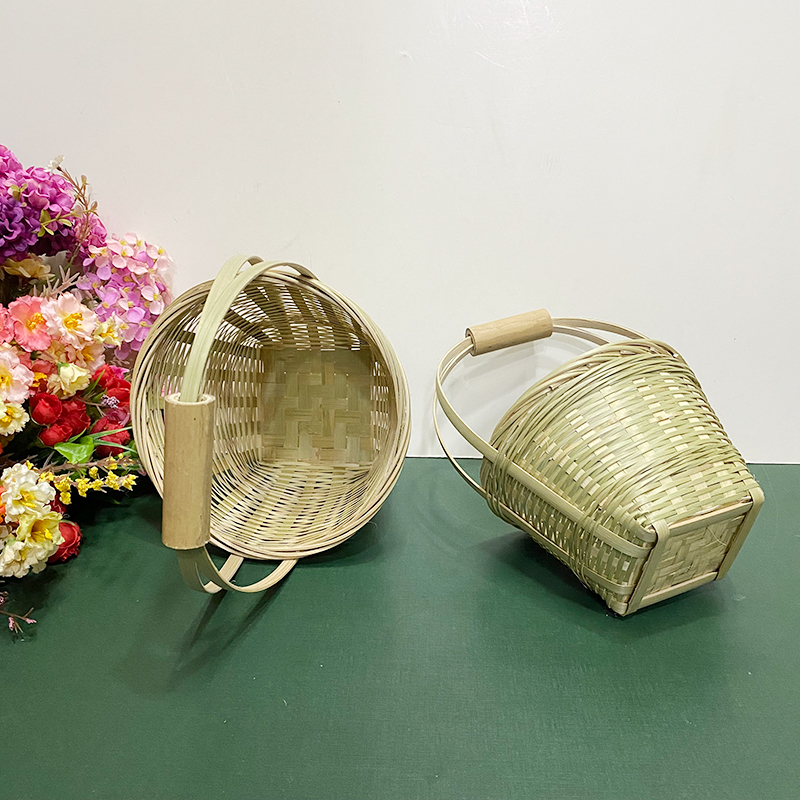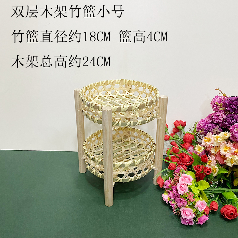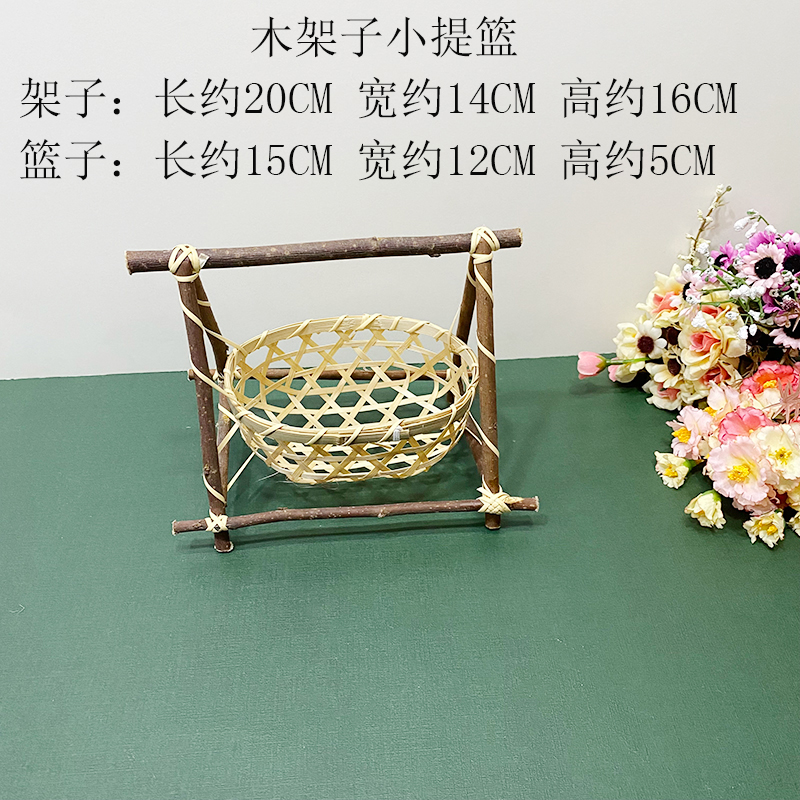 wooden shelf bamboo shopping basket