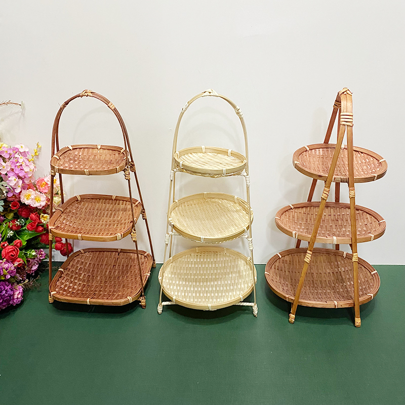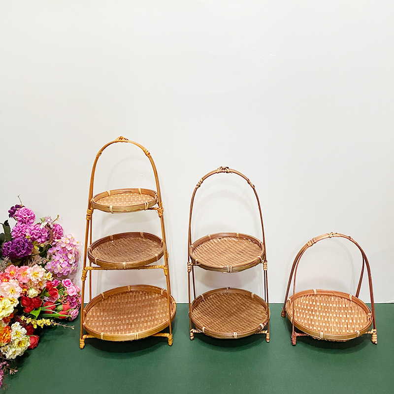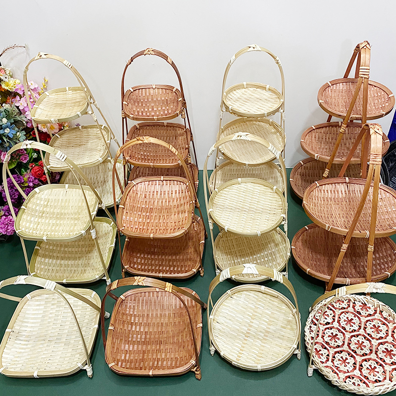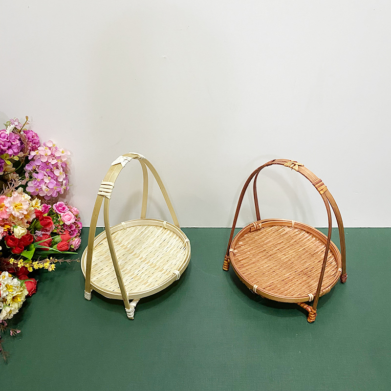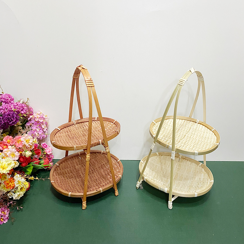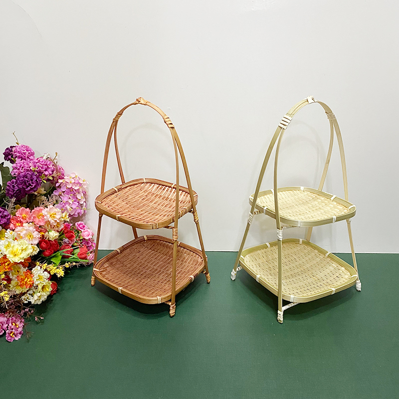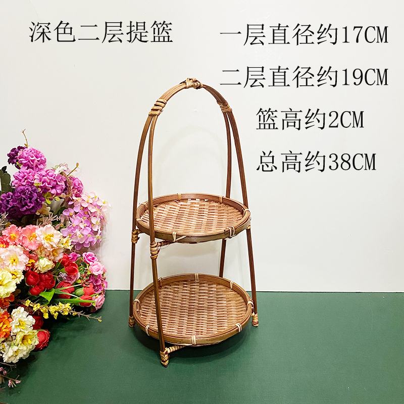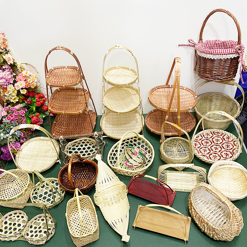 wooden shelf bamboo shopping basket