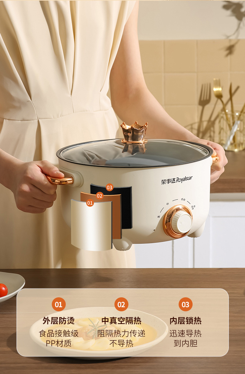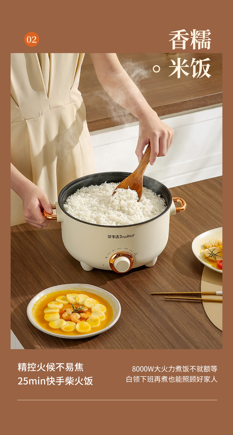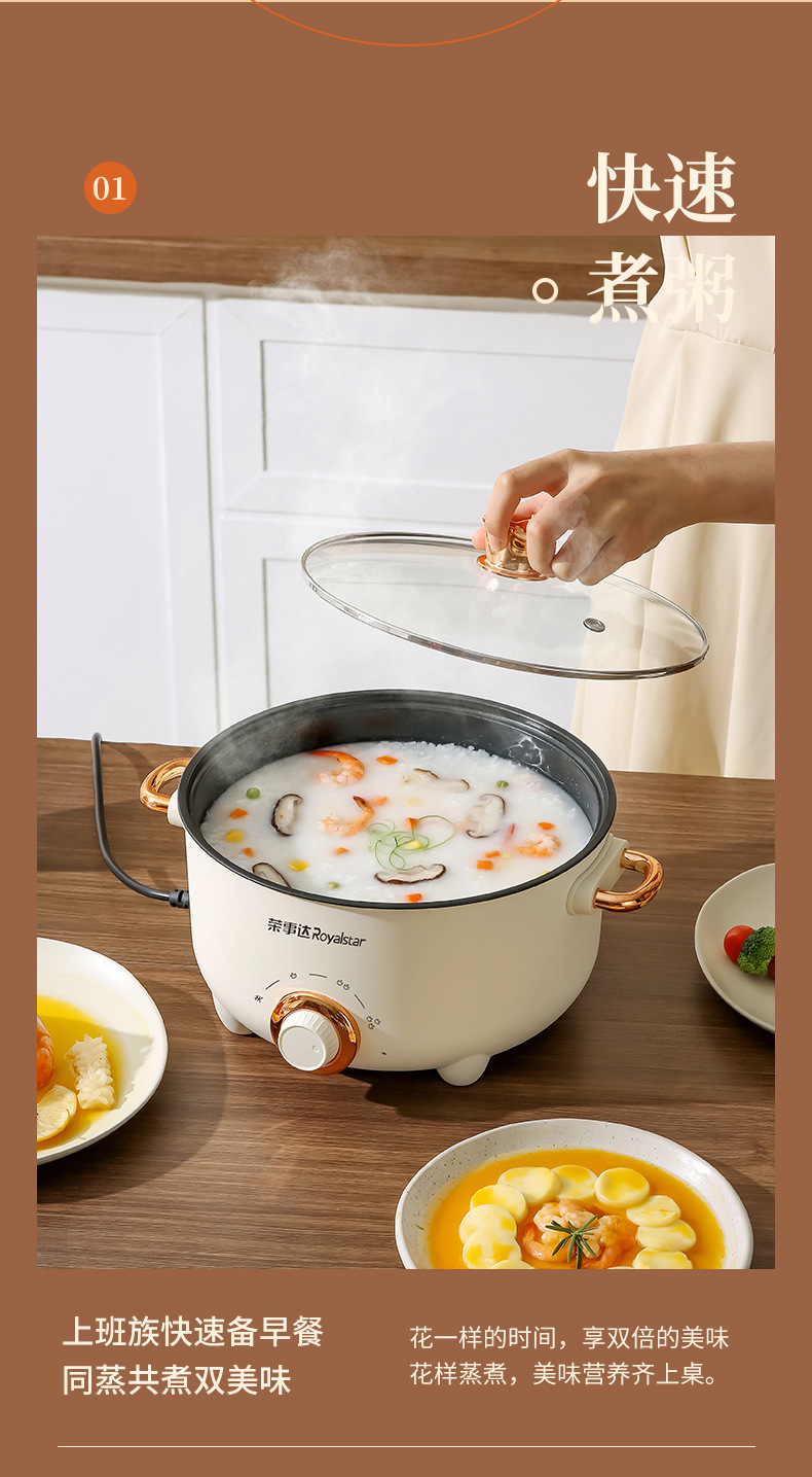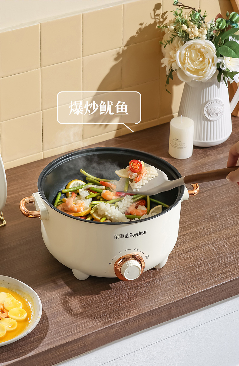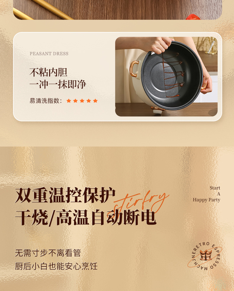 20-tube ear non-stick pan + stainless steamer-pottery white
