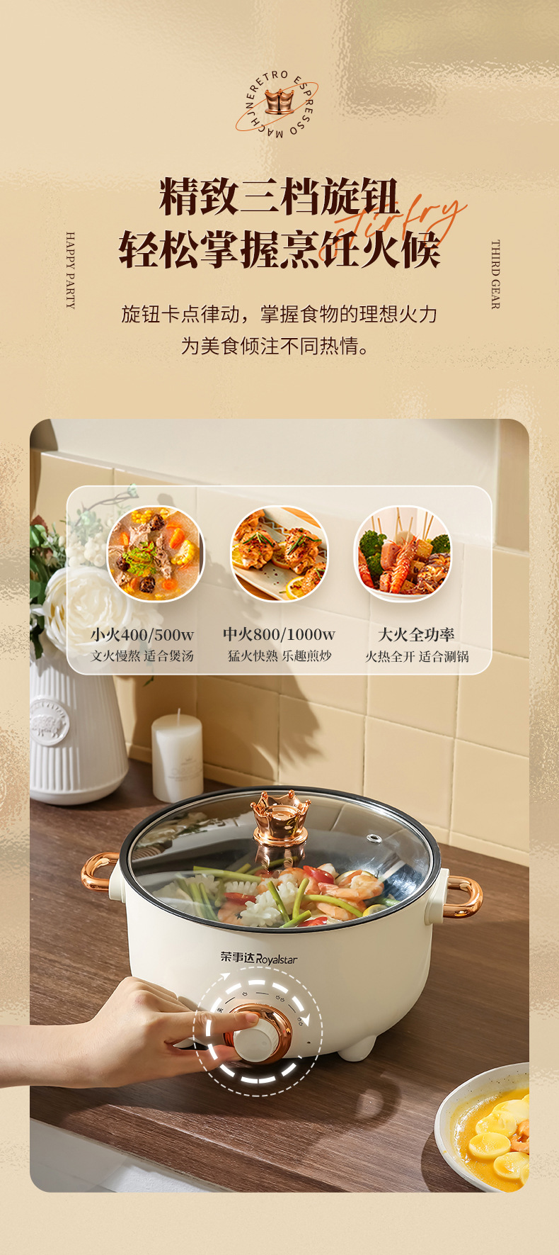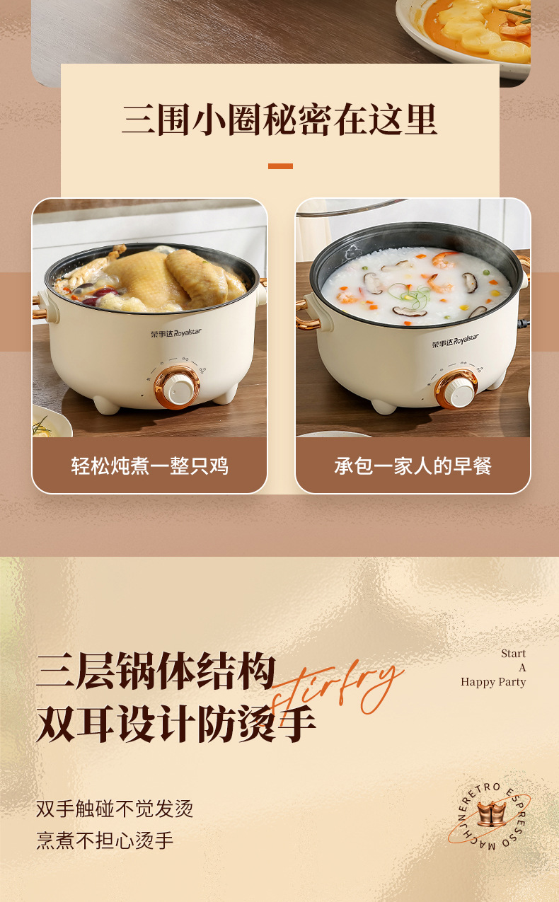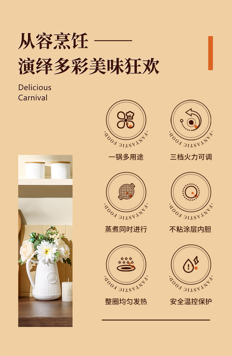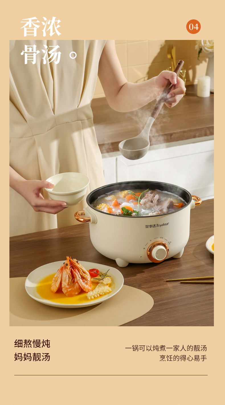20-tube ear non-stick pan + stainless steamer-pottery white