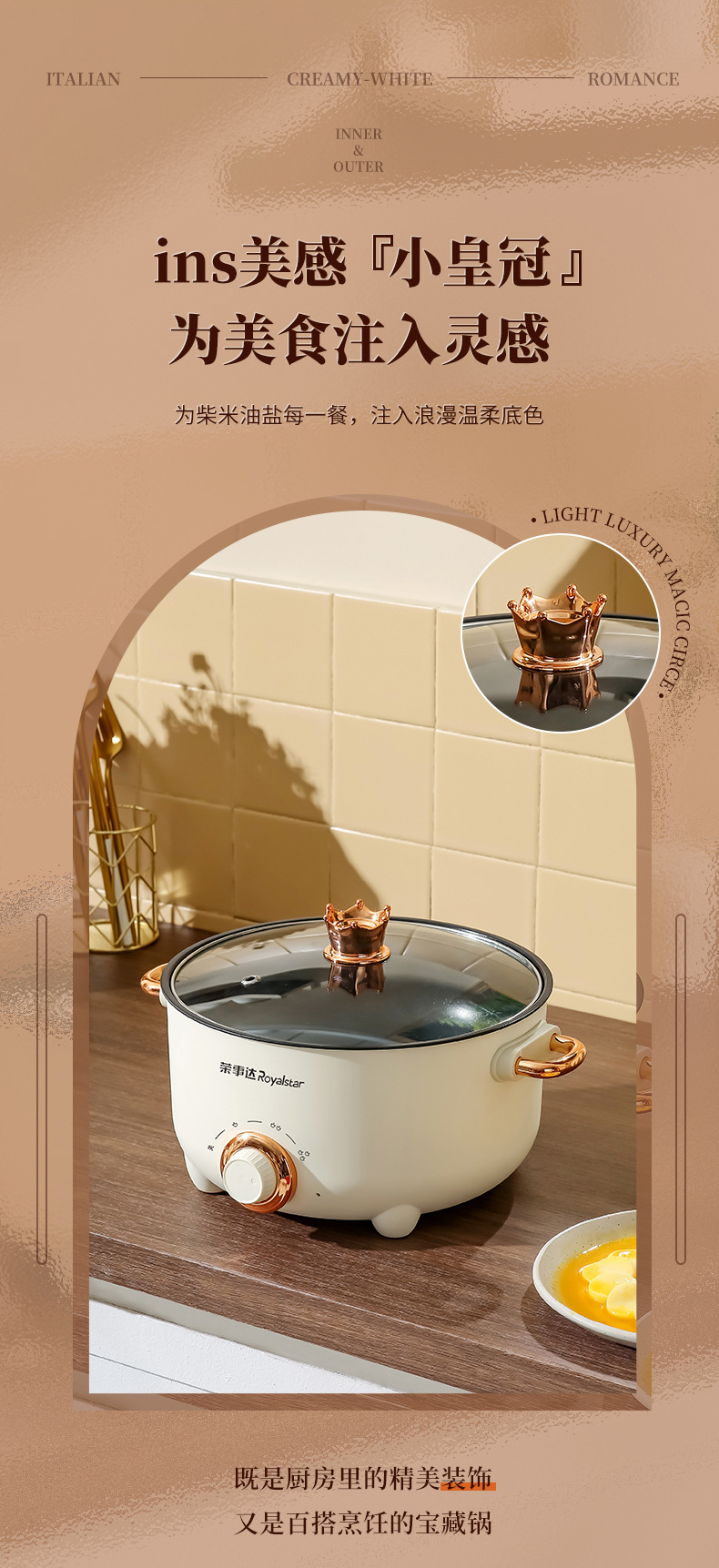 22-tube ear non-stick pan + stainless steamer-pottery white