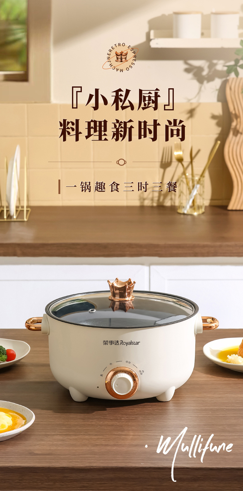 24-tube ear non-stick pan + stainless steamer-pottery white