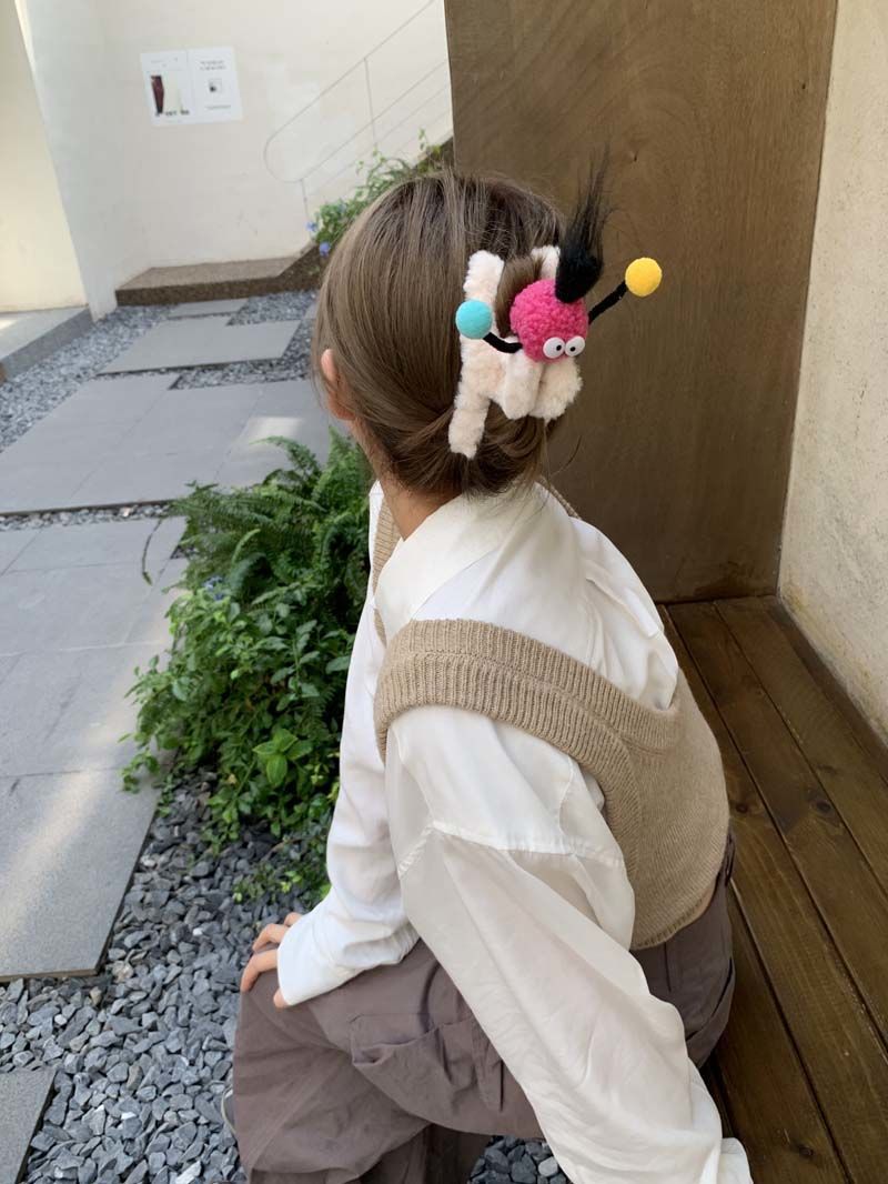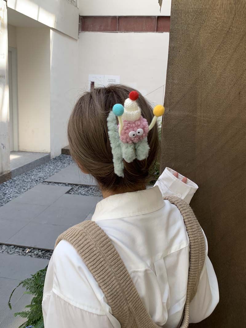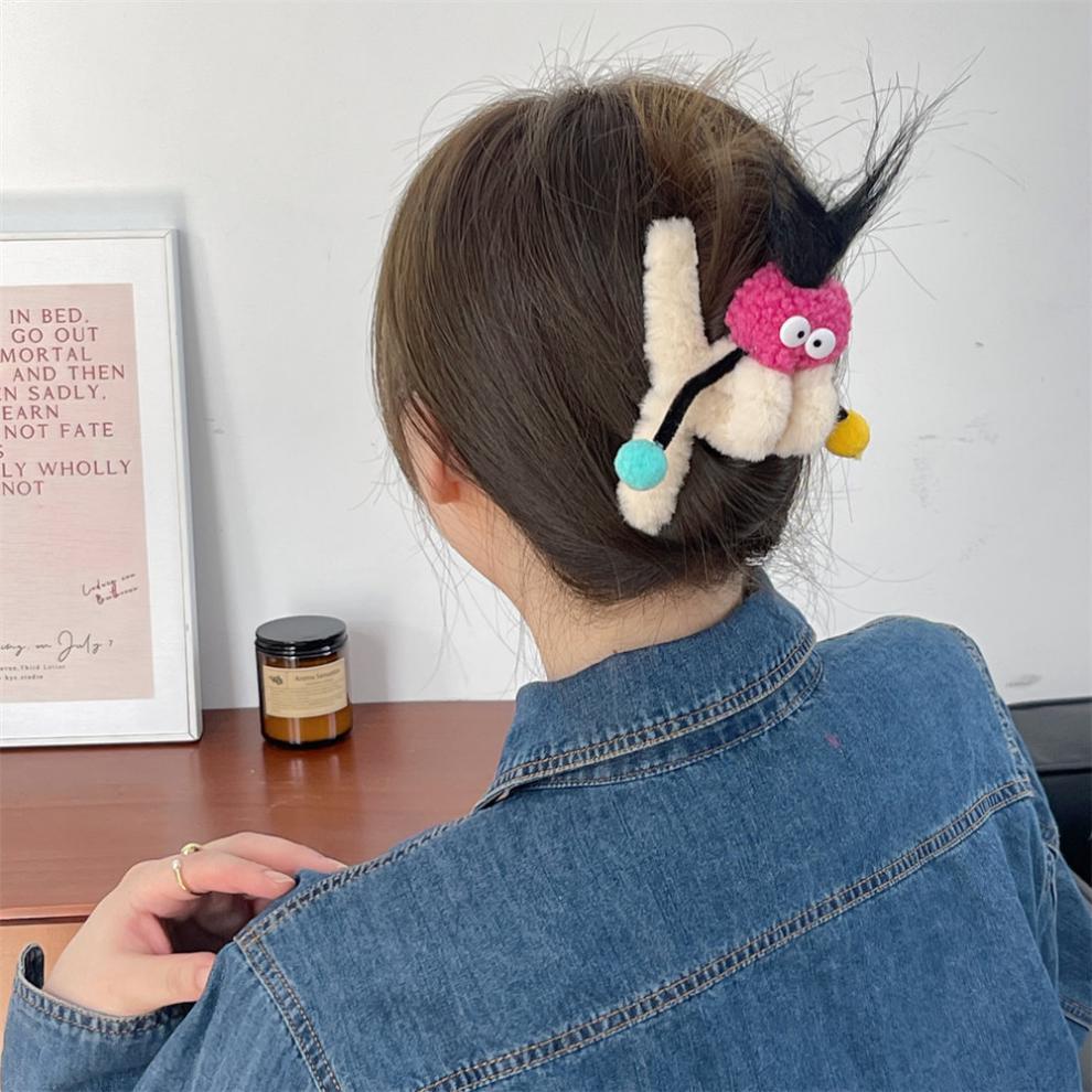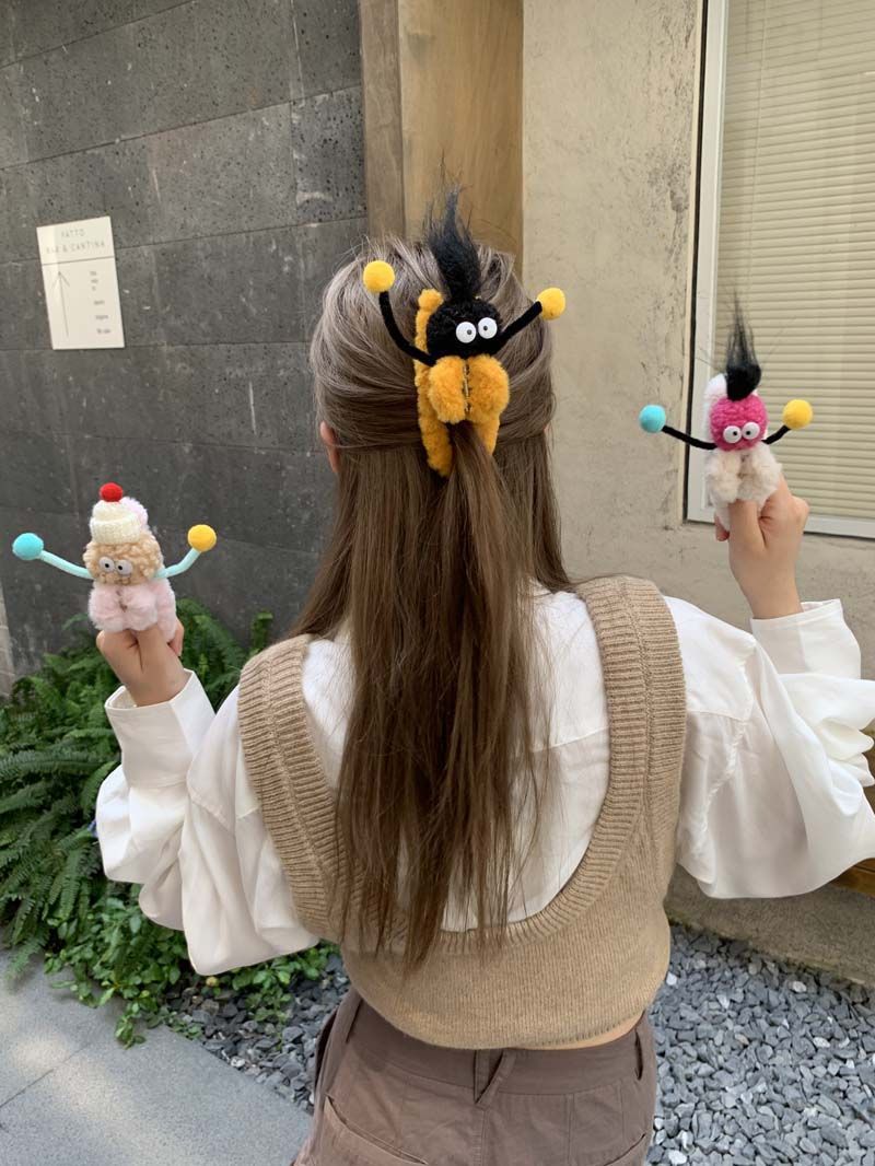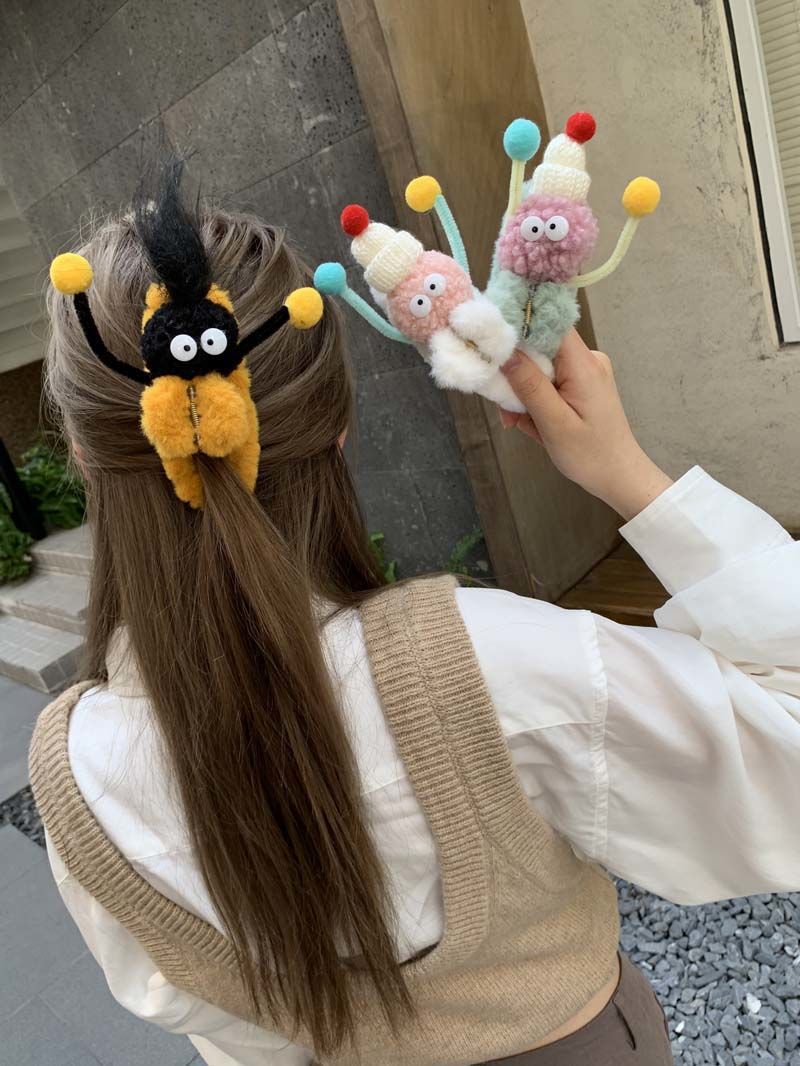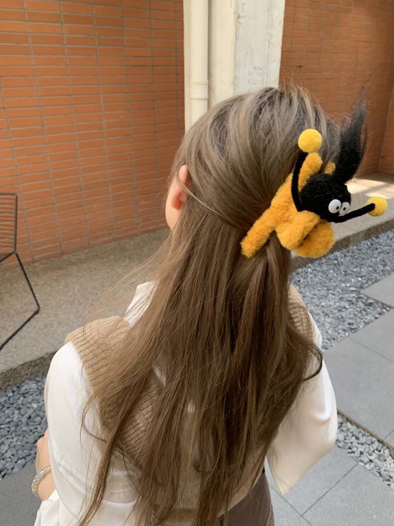 4# yellow plush barrettes