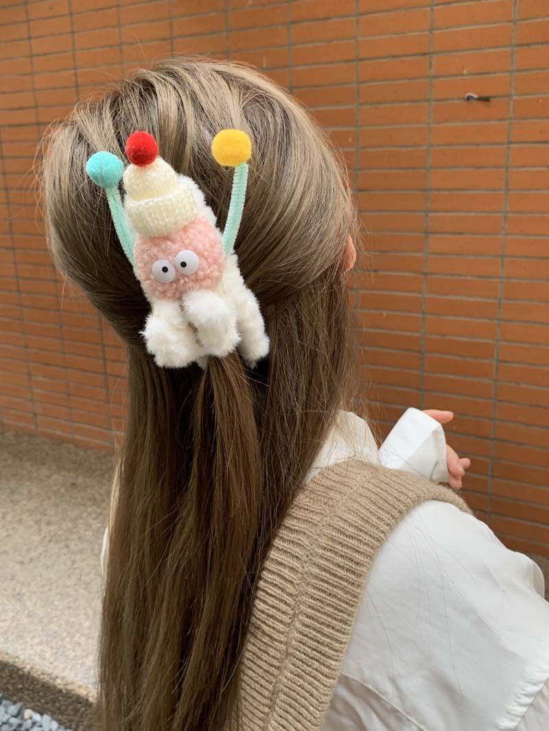 5# pink plush barrettes