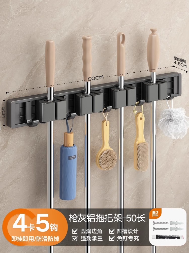 gun gray mop rack 50cm-4 card 5 hooks