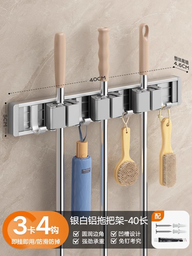 silver white mop rack 40cm-3 card 4 hooks
