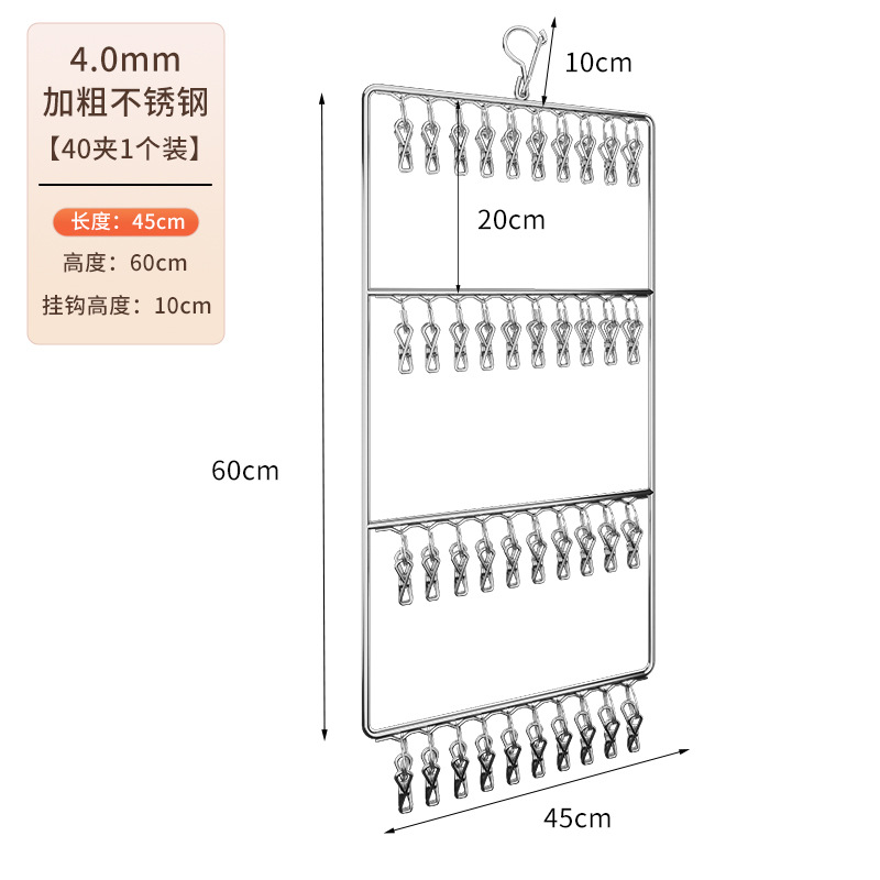 verticle square stainless steel socks clip four-layer 40 clip-natural color