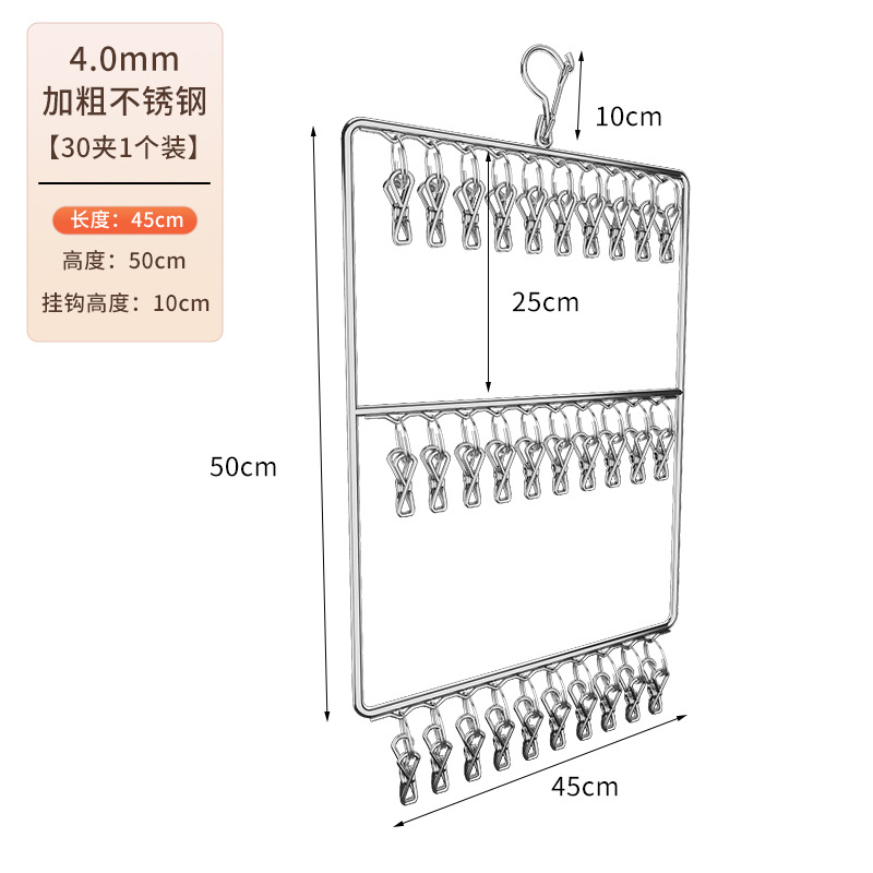 verticle square stainless steel socks clip three layers 30 clips-natural color