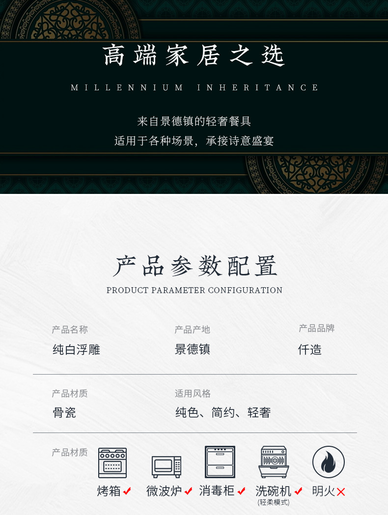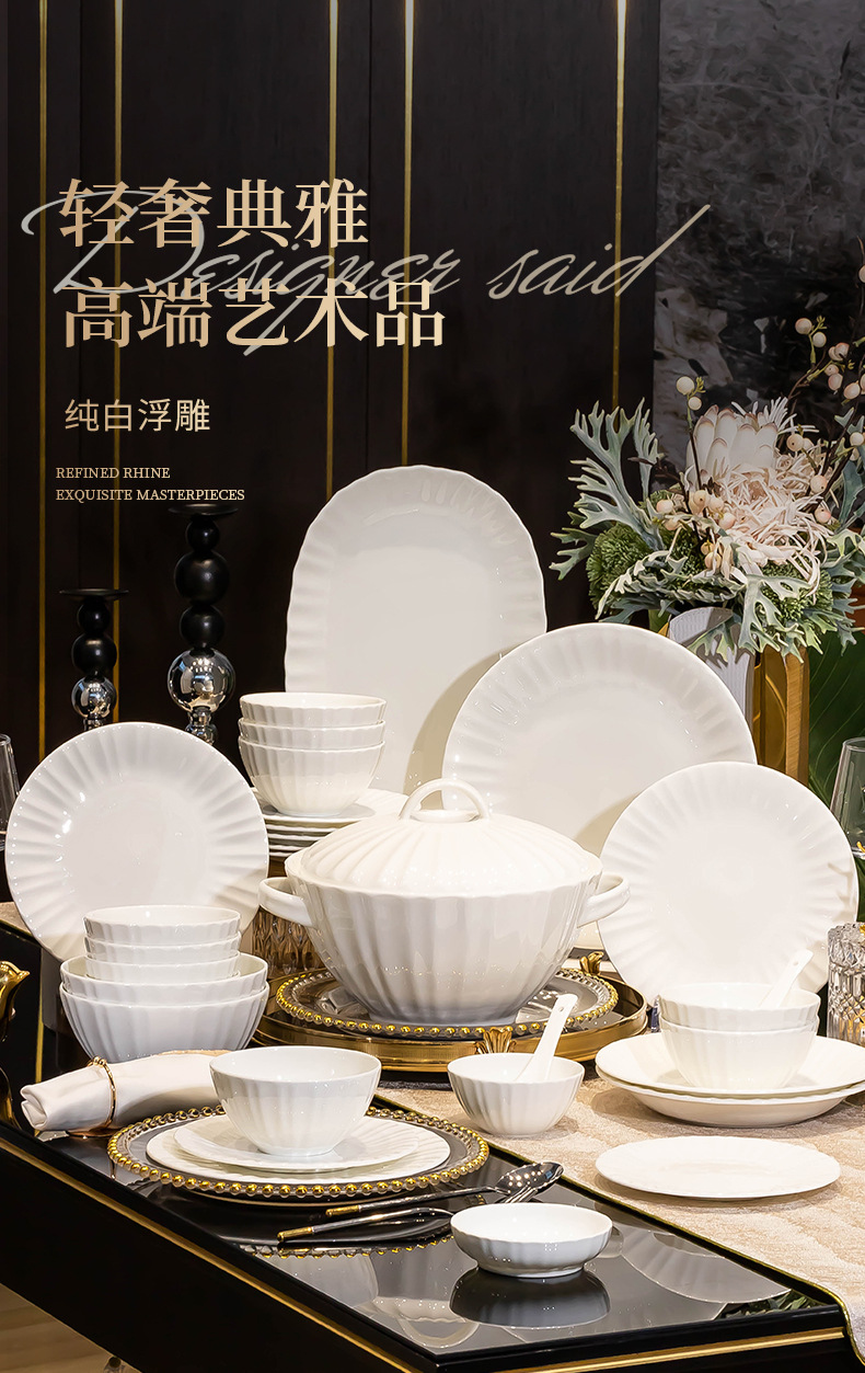pure white embossed-10-inch large plate