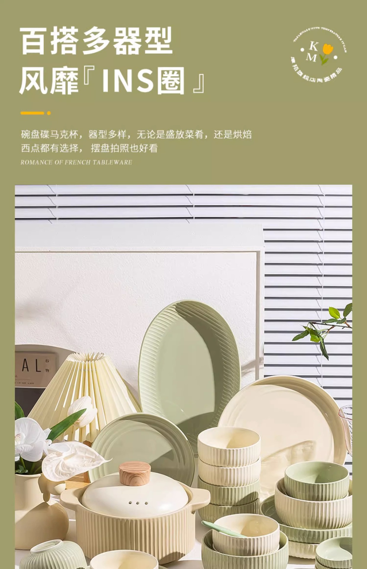 early summer vertical pattern-8-inch thread shallow plate [light green]]