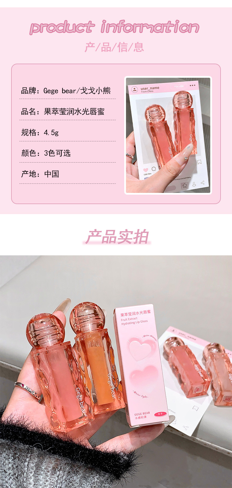 Product Name: GX1167 Gogotoo Bear Fruit Extract Moisturizing Hydrating Lip Balm