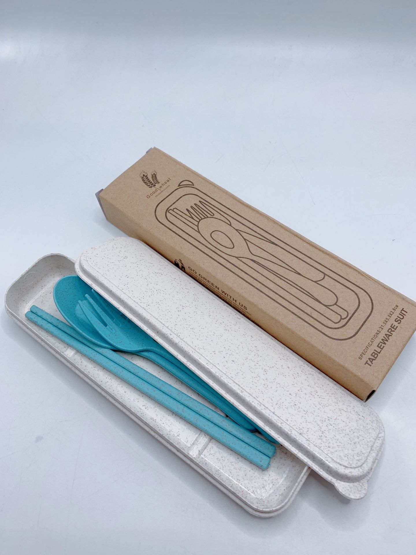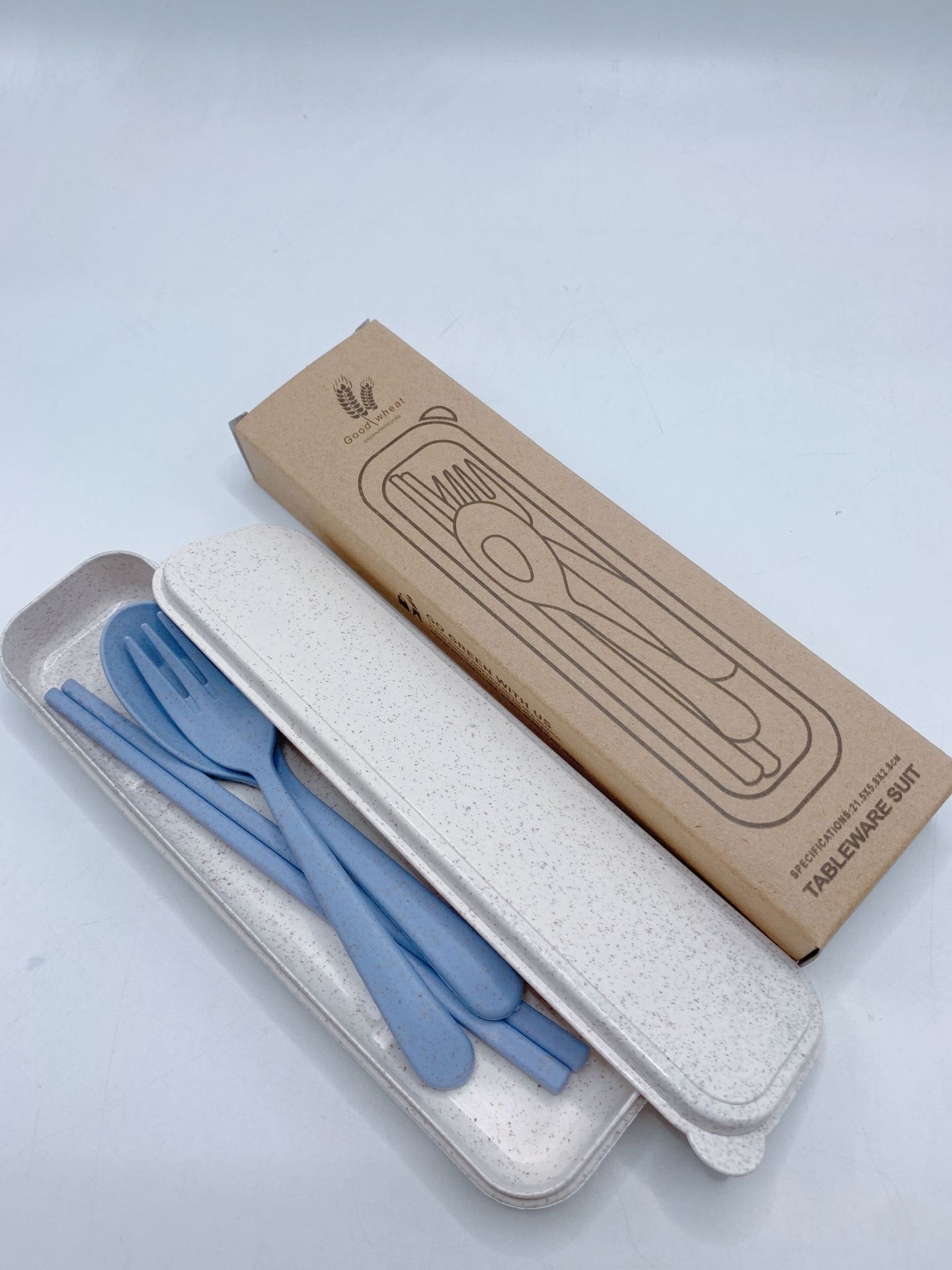 chopsticks spoon fork + wheat box blue