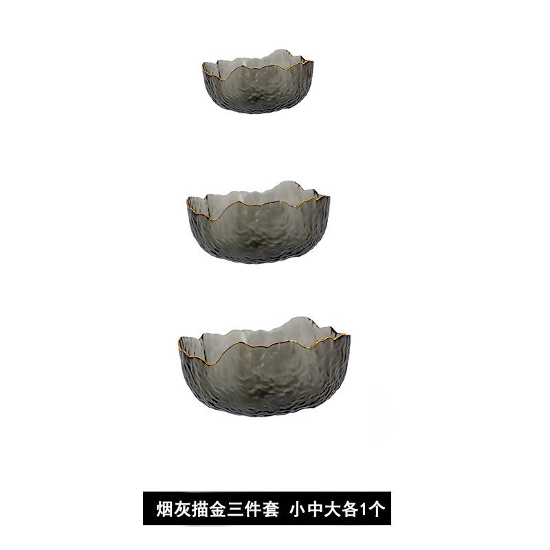 smoky gray golden edge salad bowl three-piece set