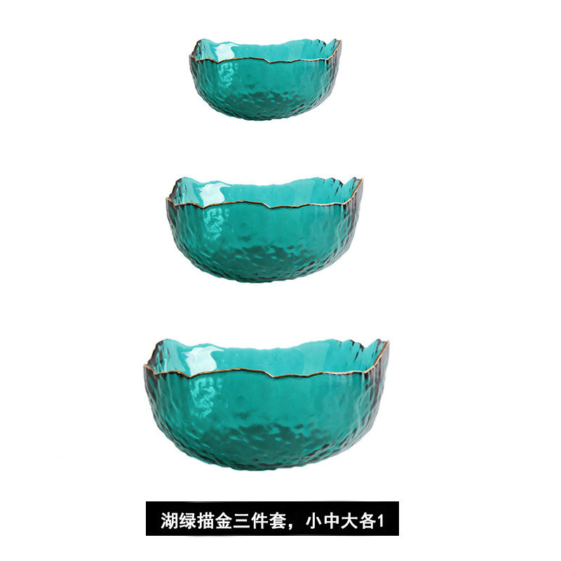green golden edge salad bowl three-piece set