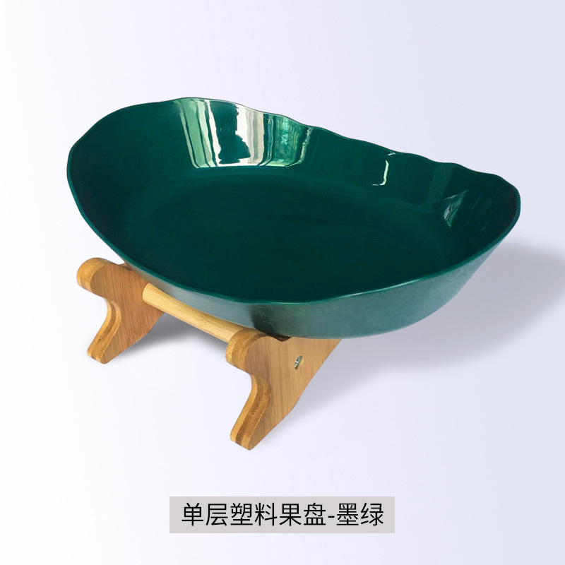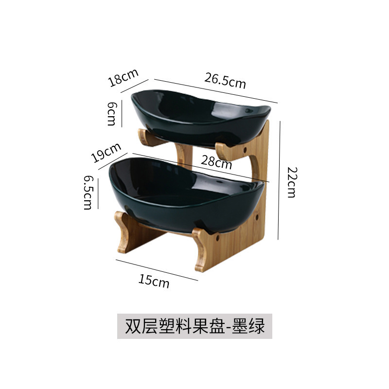 double-layer ceramic fruit plate-dark green