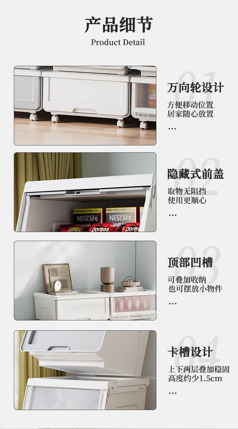 2412 drawer type storage box white transparent pulley
