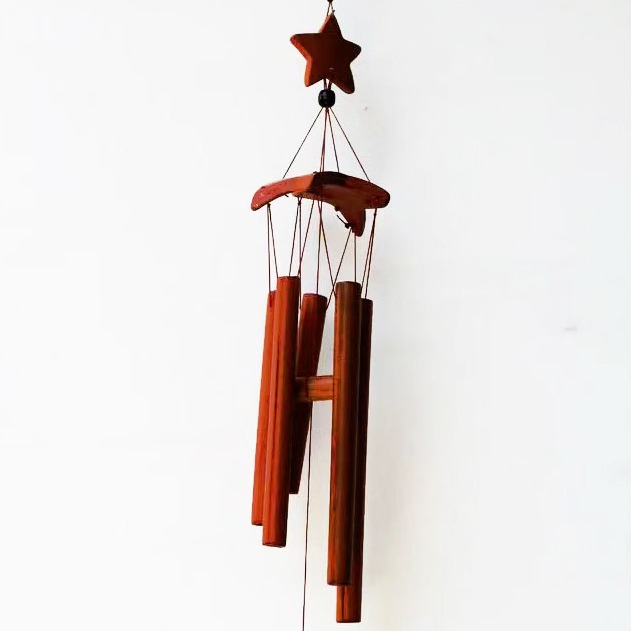 New garden bamboo handcrafted star and moon wind chime with ecological features, bamboo and wood wind chime, export-oriented bamboo tube wind chime with diverse styles, clear and crisp sound, giving a feeling of gurgling spring water, suitable for various occasions, minimum order quantity of 1000 pieces.