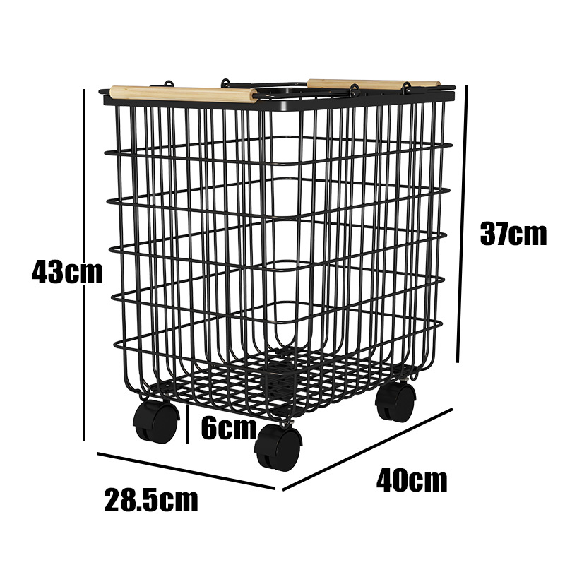 1 large black basket with wooden bar handle (with universal wheel)