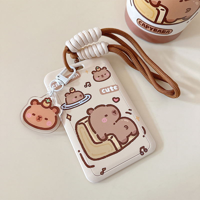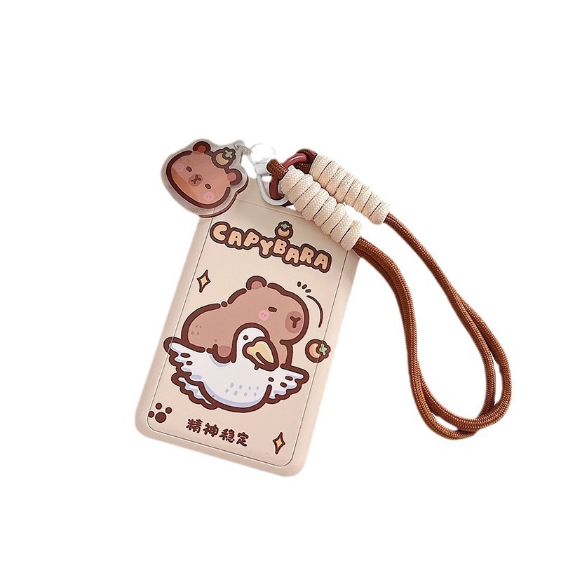 card holder + woven keychain (gongde capybara)