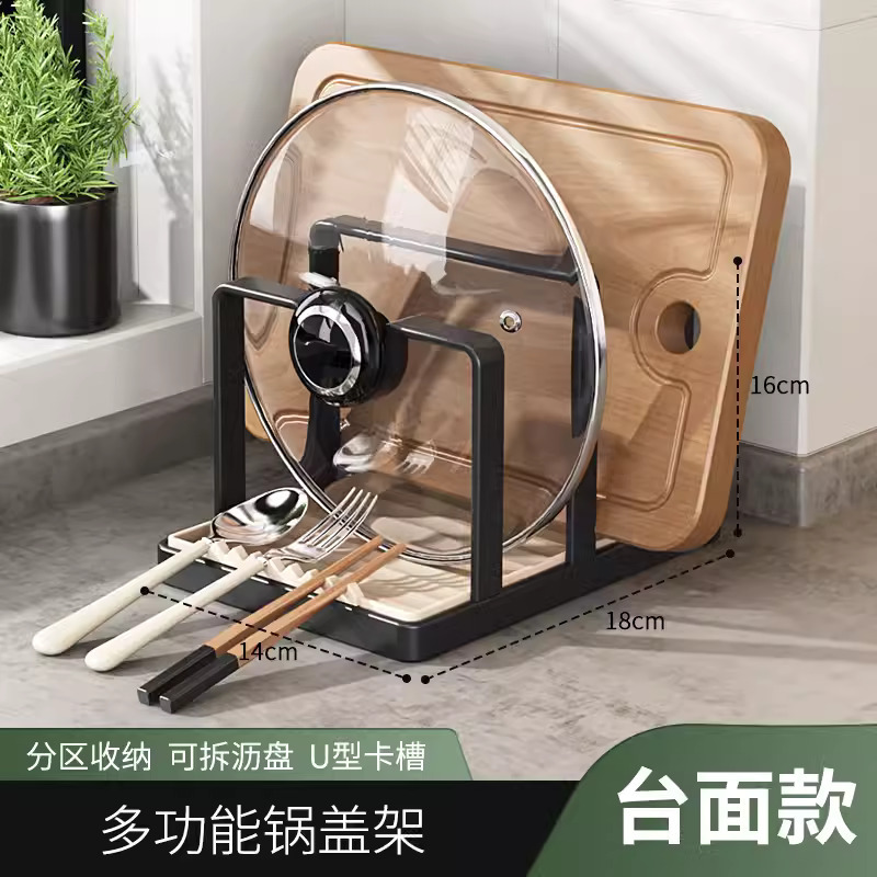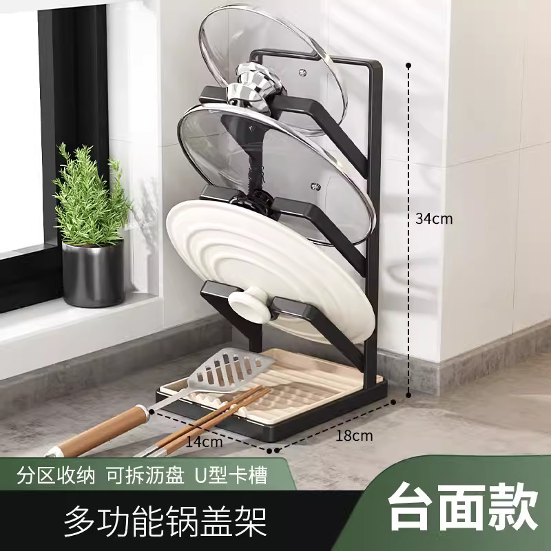 matte black carbon steel thickened three-layer pot cover rack