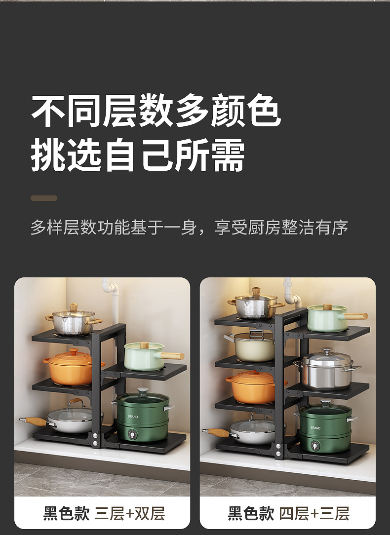 black single side pot rack 4 layers