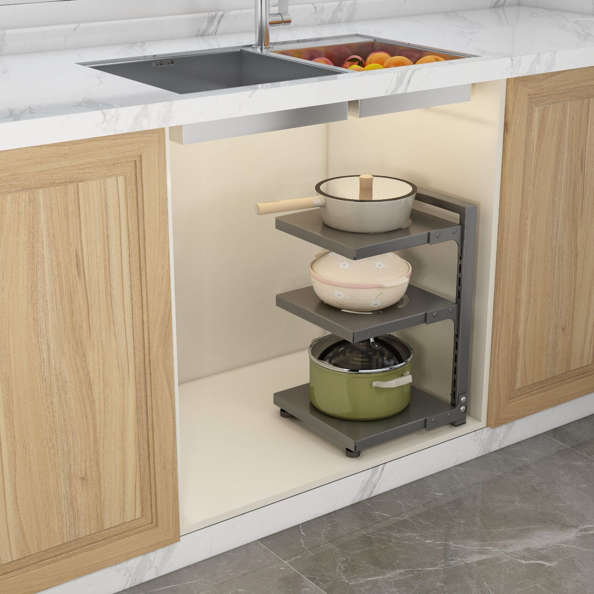 gray single-side pot rack 3-layer