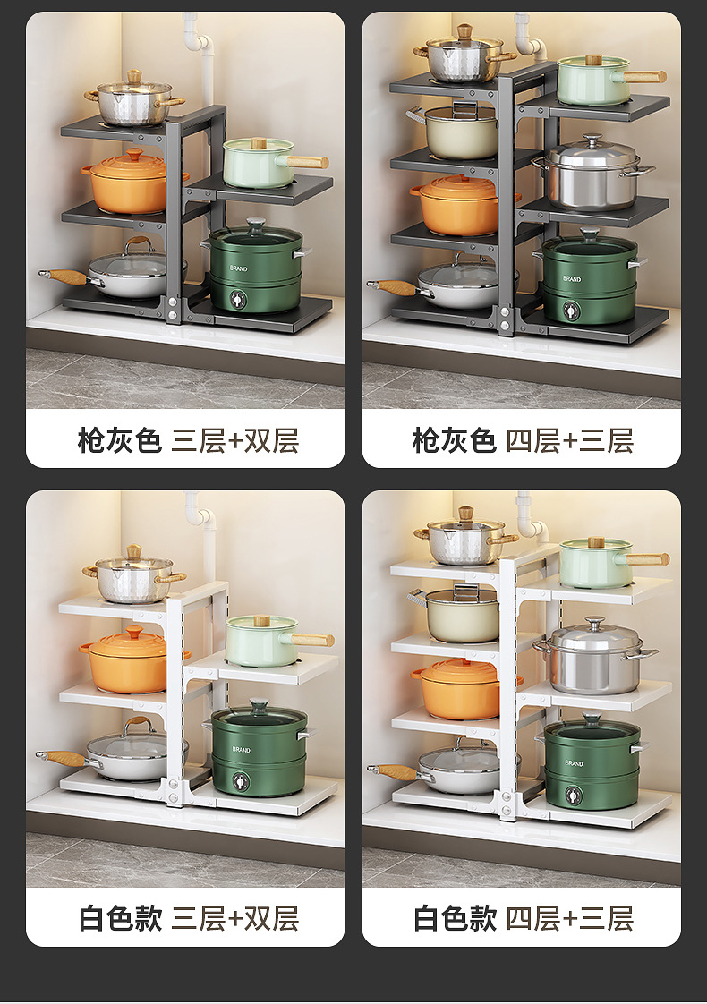gray bilateral pot rack 4+3 layers