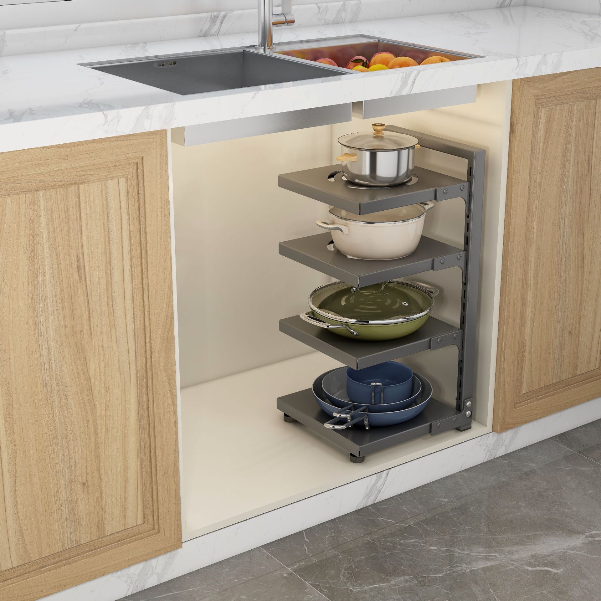 gray single-side pot rack 4-layer