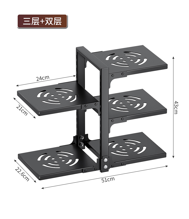 black bilateral pot rack 3+2 layers