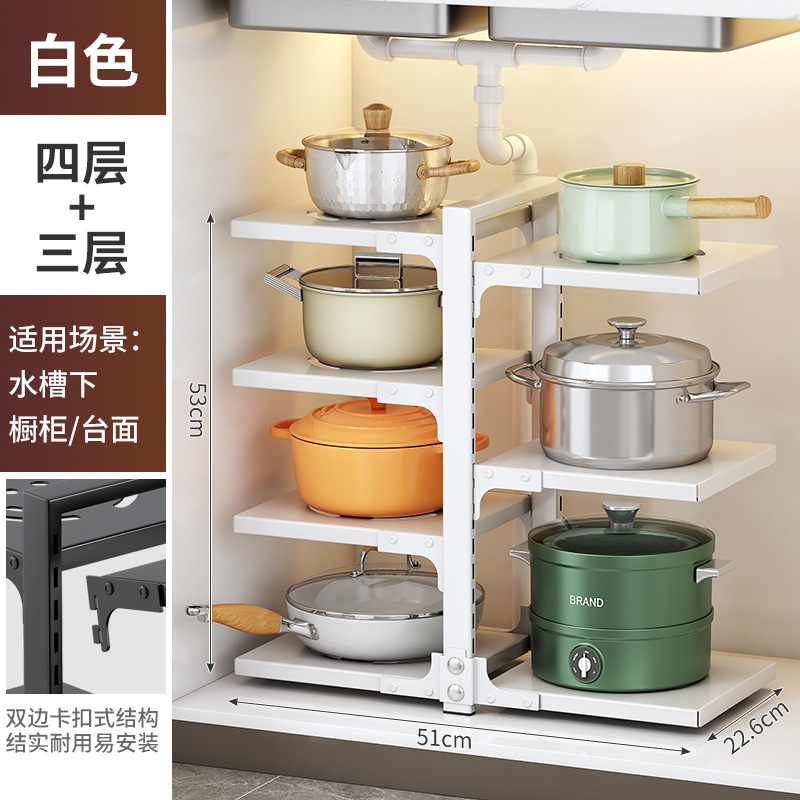 white bilateral pot rack 4+3 layers