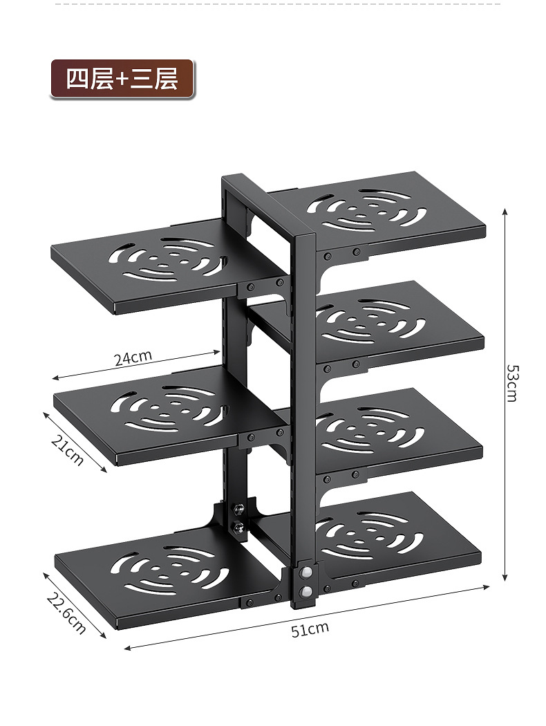 black bilateral pot rack 4+3 layers