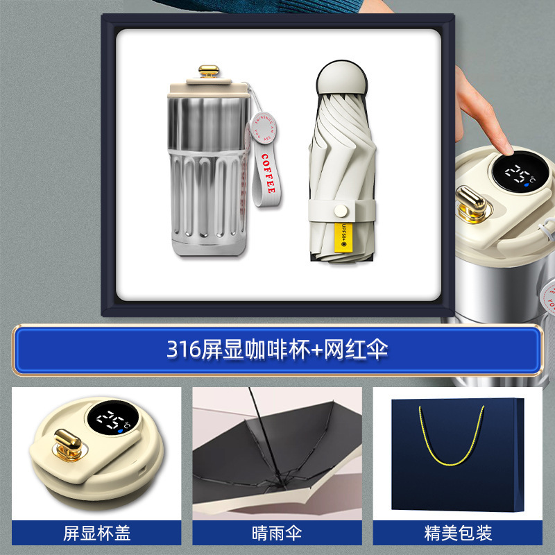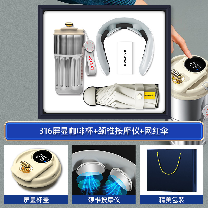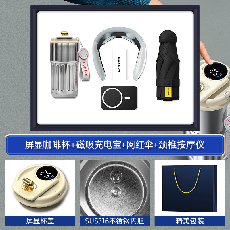 white-316 digital coffee cup neck massager internet sensation umbrella magnetic power bank four-piece set