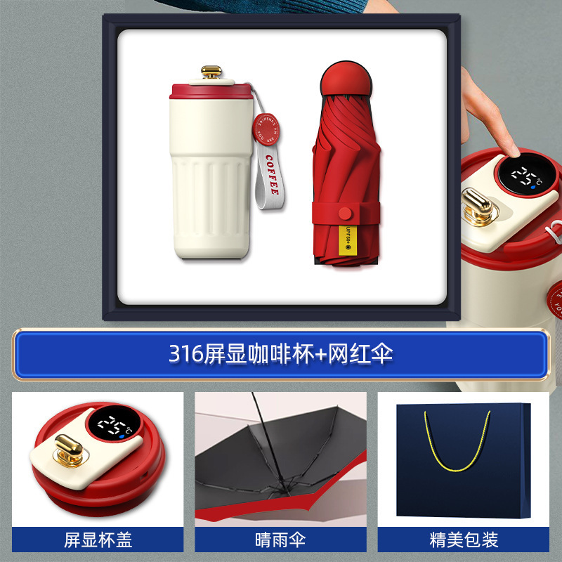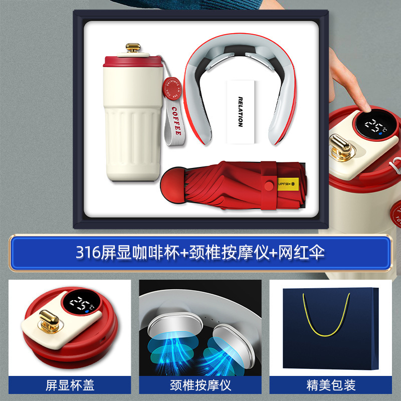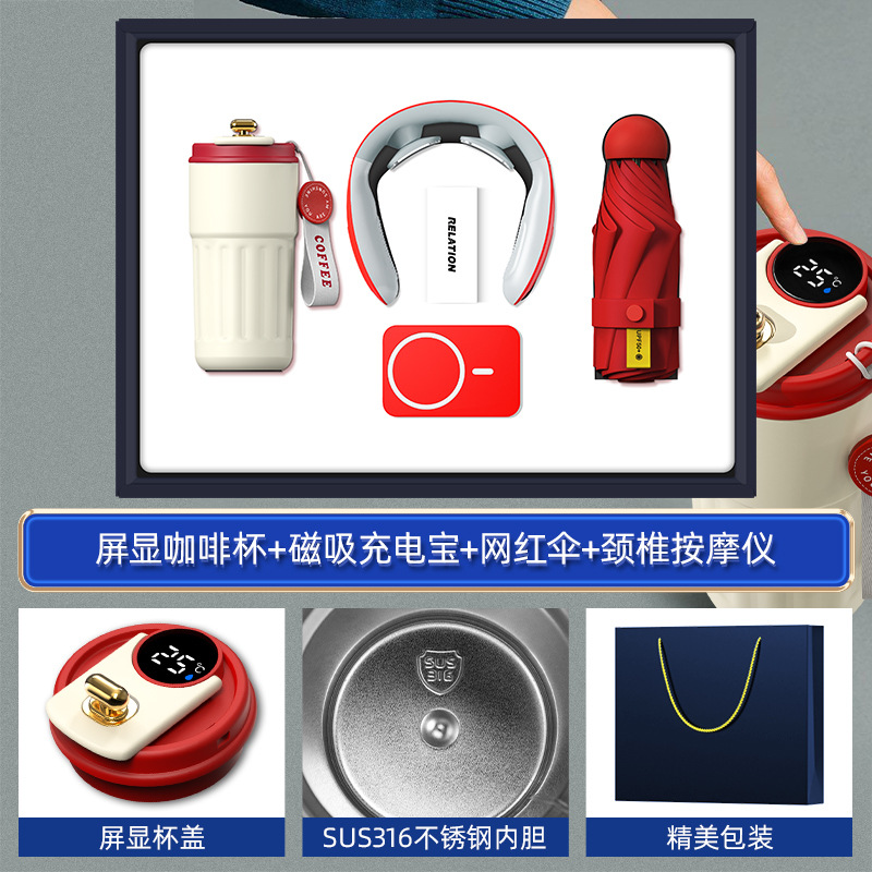 red-316 digital coffee cup neck massager internet sensation umbrella magnetic power bank four-piece set