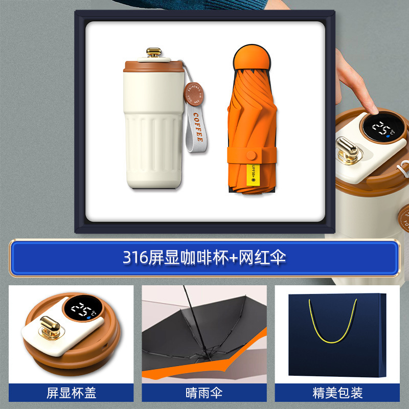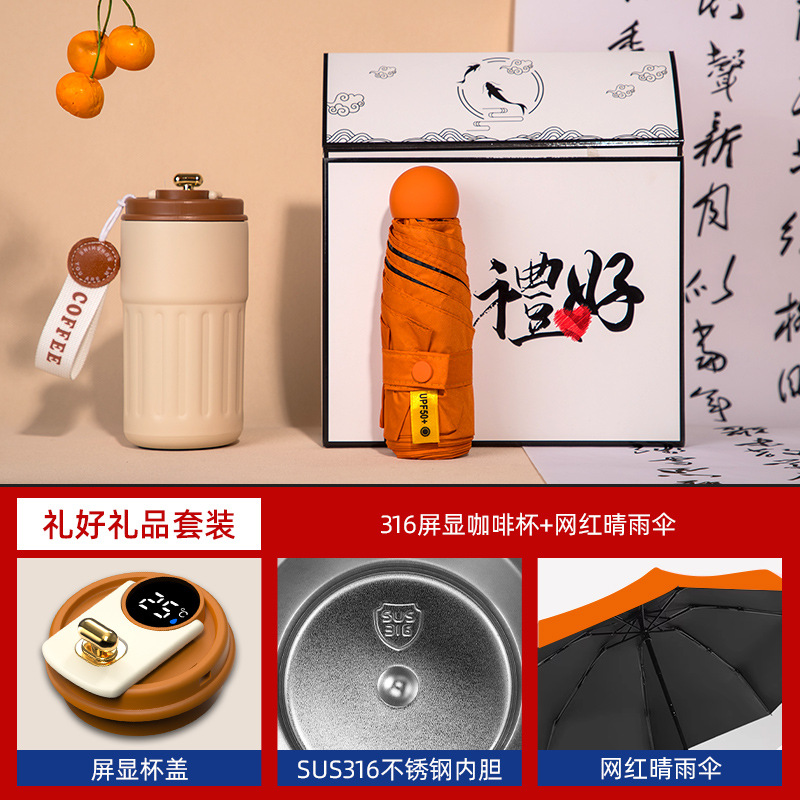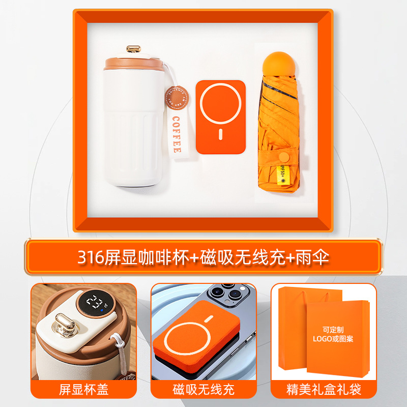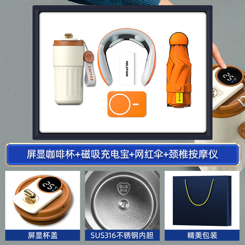 orange-316 digital coffee cup neck massager internet sensation umbrella magnetic power bank four-piece set