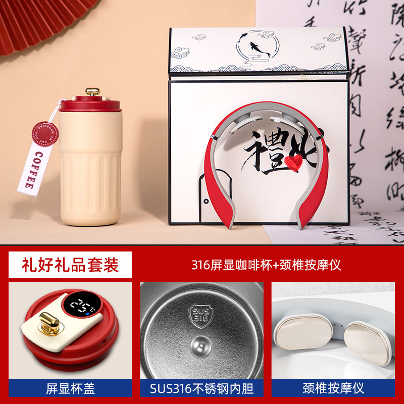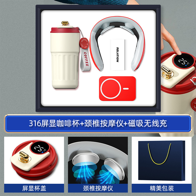 red-316 digital coffee cup neck massager magnetic power bank three-piece set
